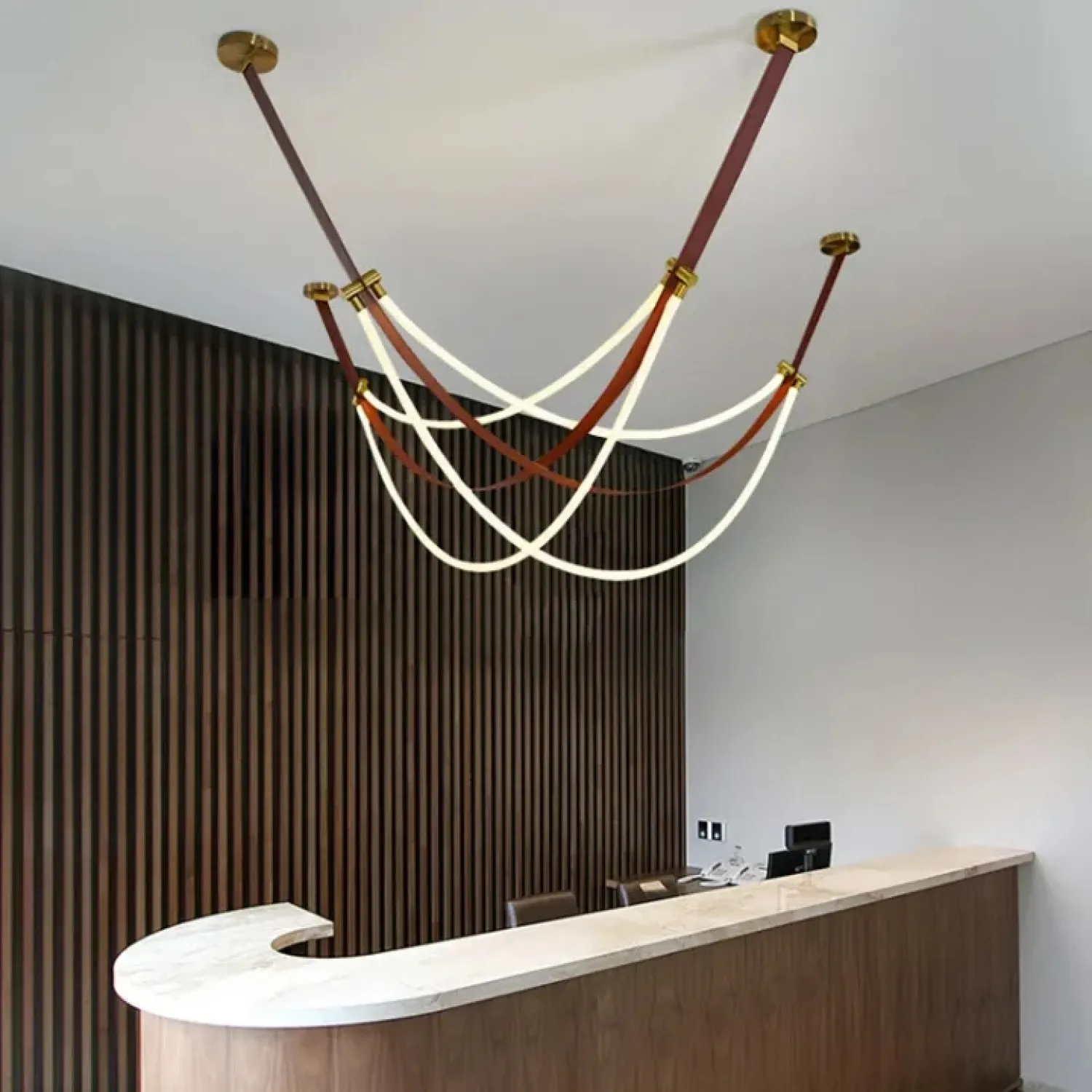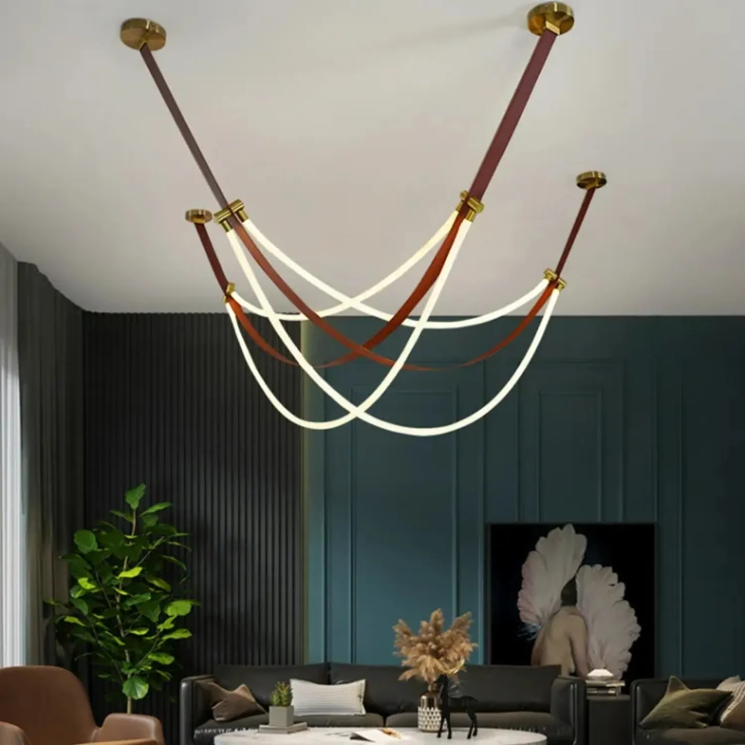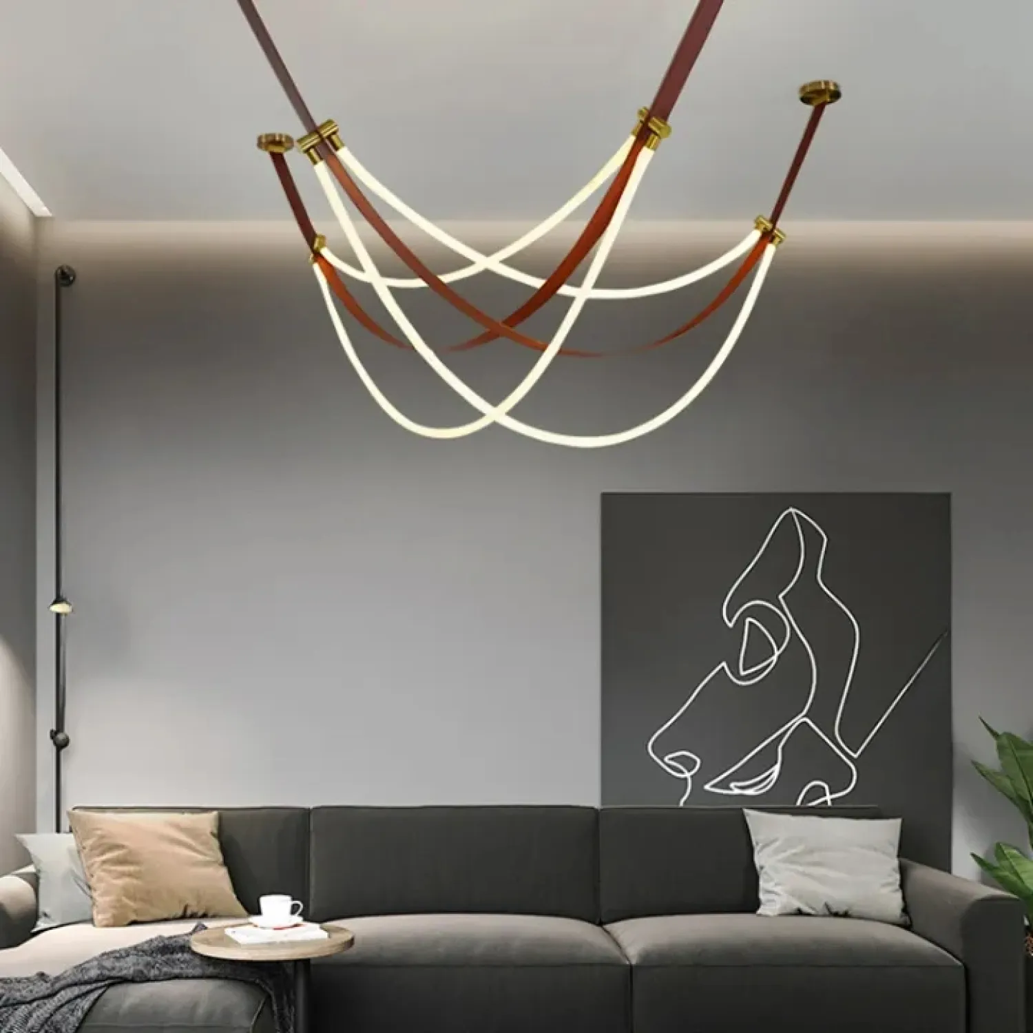 Преобразите интерьер с помощью подвесного светильника OBERT B. Этот светильник, выполненный из экокожи, силикона и металла в тёплых коричневых тонах, станет стильным акцентом в любом помещении. Оригинальный дизайн с кожаными ремнями и гибкими силиконовыми шнурами, оплетёнными текстилем, создаёт мягкое и приятное освещение. Светильник идеально подходит для современных гостиных или уютных кафе. Его лёгкий и воздушный силуэт воплощает стиль лофт и скандинавского минимализма, добавляя пространству комфорт и эстетику. Длина кабеля в 190 сантиметров позволяет легко адаптировать светильник под различные высоты и размеры помещения, создавая атмосферу уюта и спокойствия.