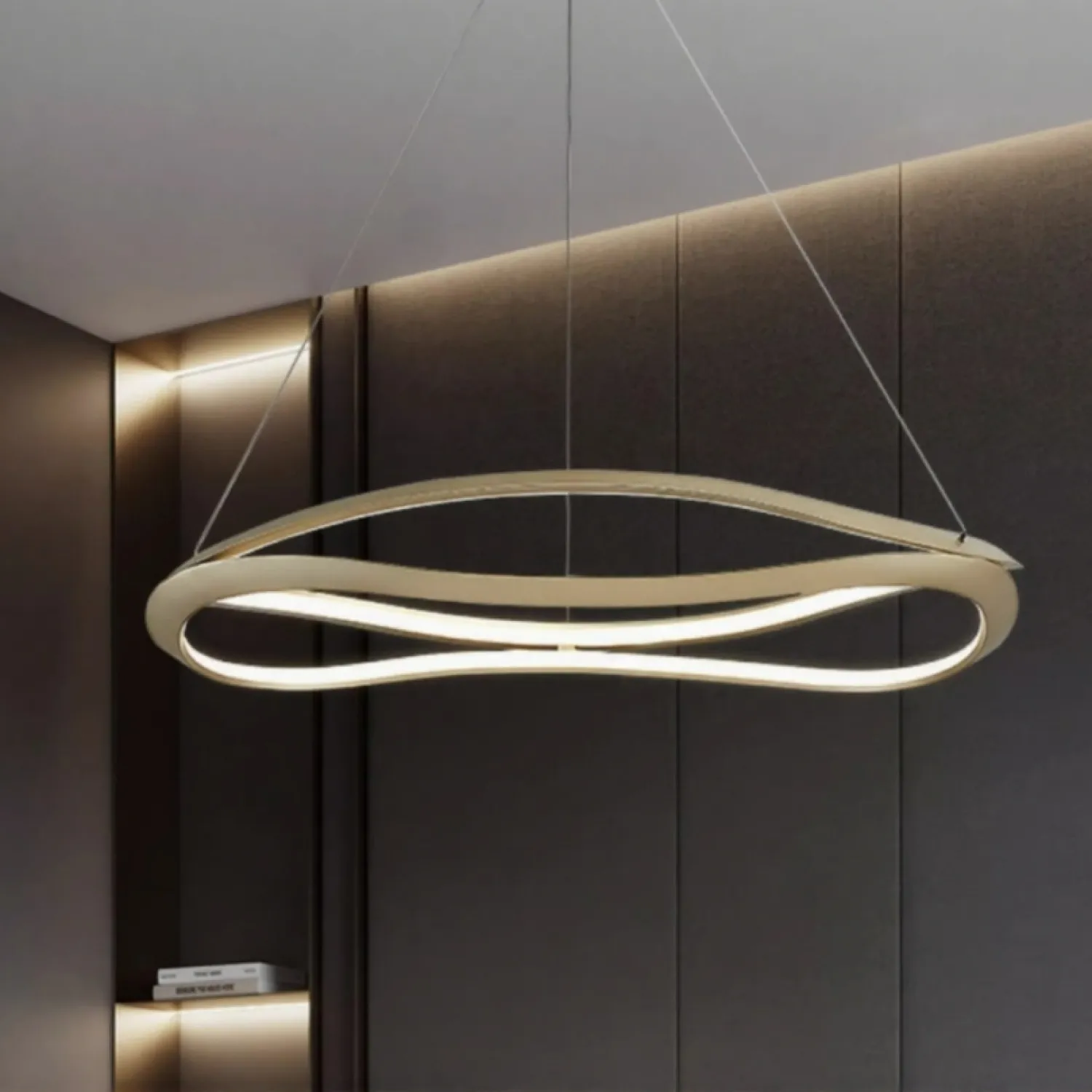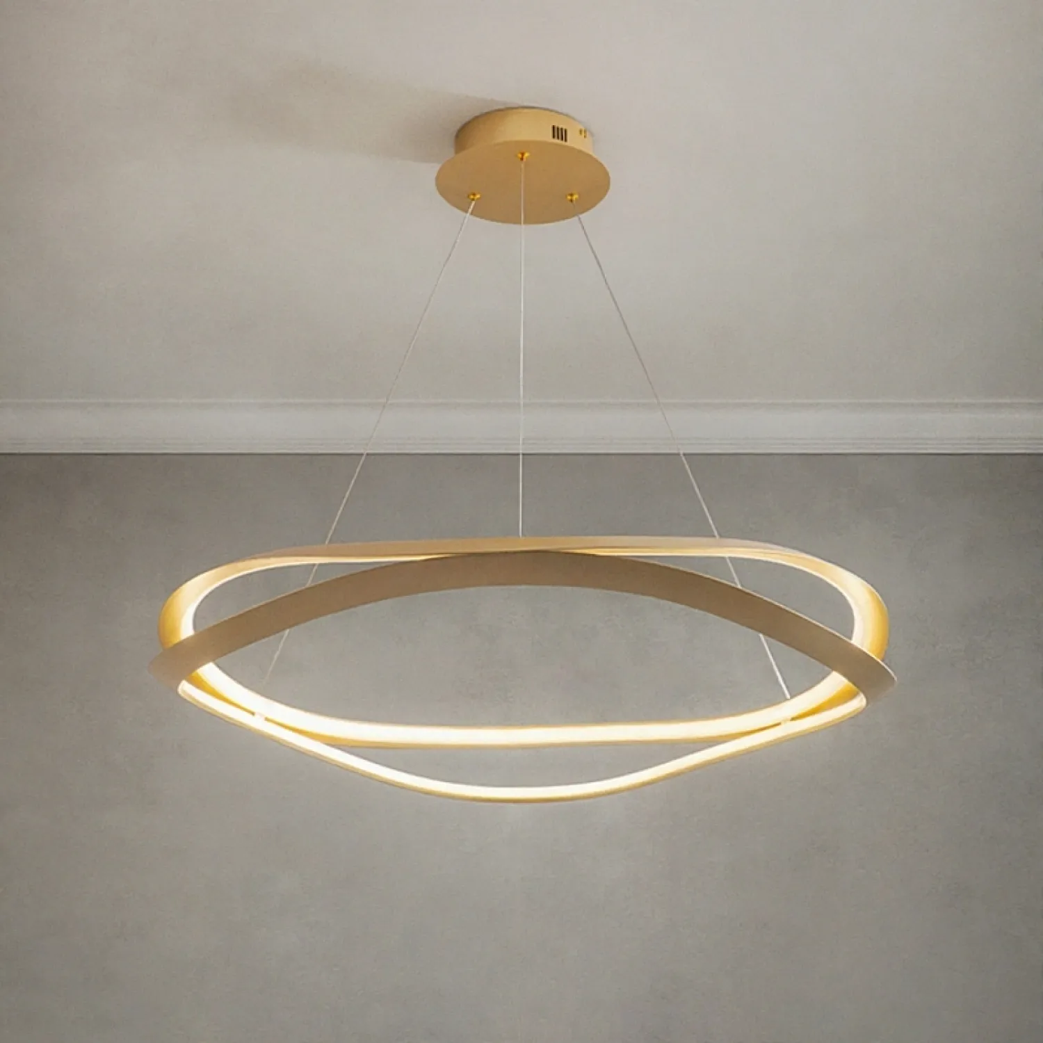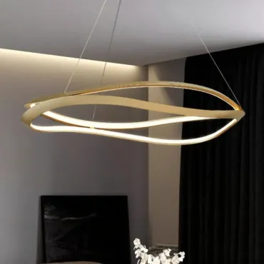 Люстра DANIELA из коллекции современных светильников идеально подходит для гостиной или столовой. Она создает эффектную атмосферу благодаря изящным изогнутым плафонам из металла и акрила, выполненным в латунном цвете. Эти элементы придают пространству элегантность и современный стиль. Светодиодная матрица и трехцветный режим освещения позволяют выбрать мягкий, рассеянный или яркий свет в зависимости от настроения. Компактные размеры и регулируемый подвес делают DANIELA универсальным решением для помещений с высокими потолками в стиле модерн.