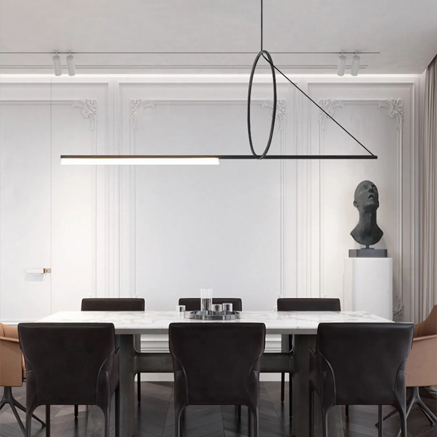 Модель SIRIS в стиле лофт и минимализма — это длинный горизонтальный светодиодный светильник с черным металлическим корпусом и акриловым плафоном. Он создает мягкое и равномерное освещение. Оригинальный подвес позволяет легко установить его в современной кухне, гостиной или офисе с высокими потолками. SIRIS придает интерьеру атмосферу сдержанной элегантности и технологичности. Благодаря удлиненной форме и светодиодной матрице светильник отличается энергоэффективностью и хорошей освещенностью. Его геометрическая и световая линия идеально вписывается в индустриальные и модернистские интерьеры, подчеркивая лаконичность и строгость пространства. Светильник легко интегрируется в дизайн, не перегружая визуальное восприятие.