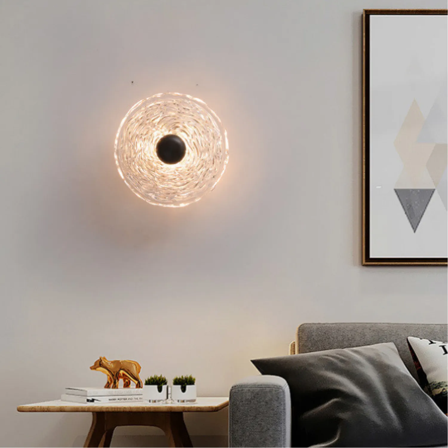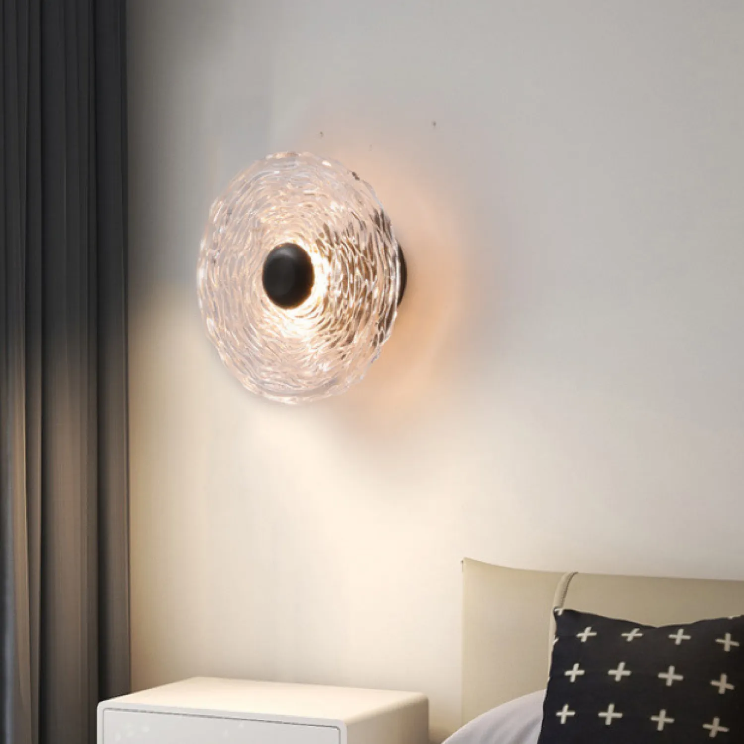Настенный светильник создает мягкую диффузную атмосферу, идеально подходящую для современных интерьеров в стиле премиум. Его дисковидные стеклянные рассеиватели ручной работы придают пространству особую изящество и утонченность, мягко распределяя теплый свет LED матрицы. Этот бра из металлического корпуса черного цвета с рельефными стеклянными элементами украшает гостиную или спальню, создавая уютную и изысканную обстановку. Его элегантный дизайн гармонично впишется в интерьеры с элементами современного минимализма, арт-деко или светильники со светодиодами. Универсальный и стильный, светильник подчеркнет интерьер, добавляя особую атмосферу с теплым и комфортным освещением. Обнови свой интерьер с этим премиальным элементом и создай ощущение уюта и роскоши.