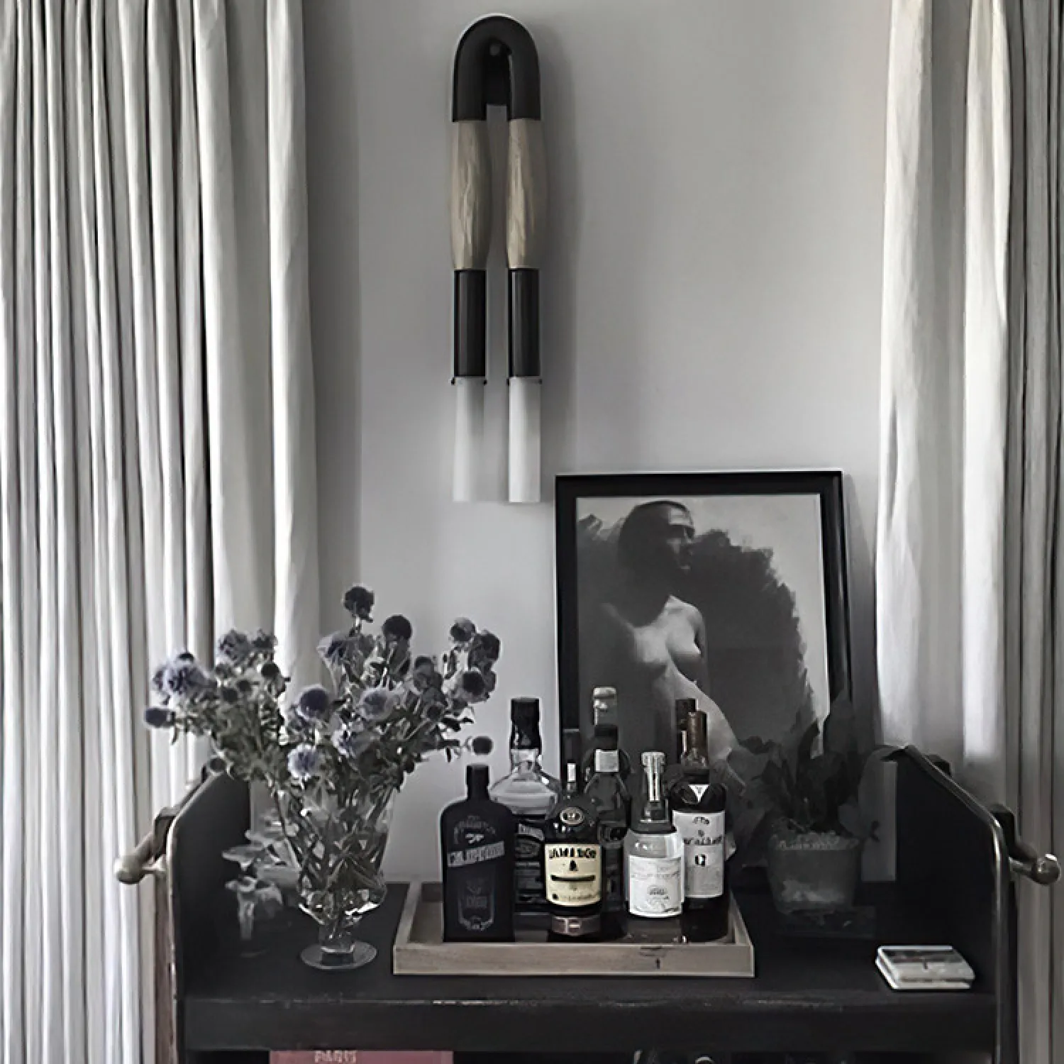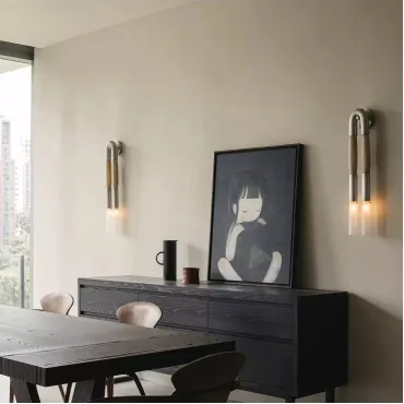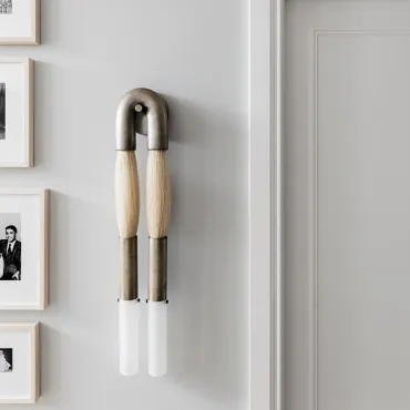 Стильный настенный светильник в современном дизайне: две «кисточки» из металла и конского волоса сочетаются с матовыми стеклянными плафонами и металлической U-образной рамой. Создаёт мягкое, уютное освещение, подчёркивая эстетику интерьера. Отлично впишется в гостиную, прихожую или зону галереи с картинами. Лаконичность и оригинальность — в каждой детали!
