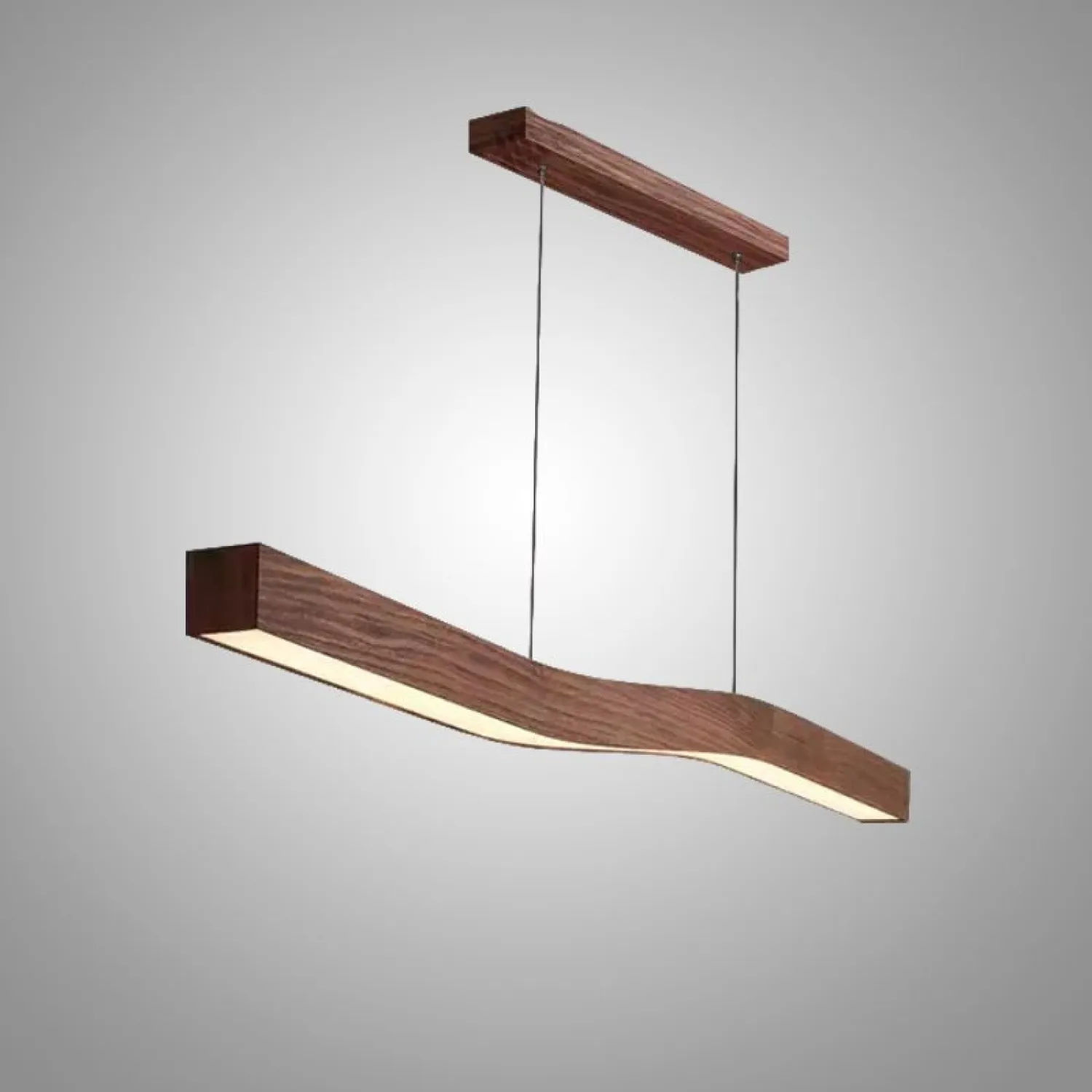 Стильный подвесной светильник с лаконичным дизайном выполнен из дерева с выразительной текстурой. Изогнутая форма придаёт изделию современный и динамичный вид. Мягкий рассеянный свет равномерно распределяется по помещению, создавая уютную атмосферу. Идеально подойдёт для гостиной, кухни или офисного пространства в стиле лофт или минимализм.