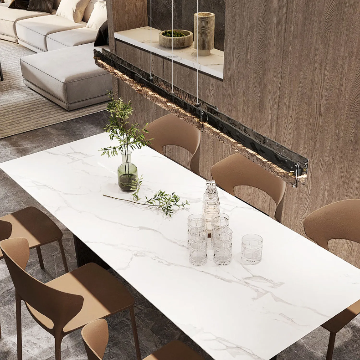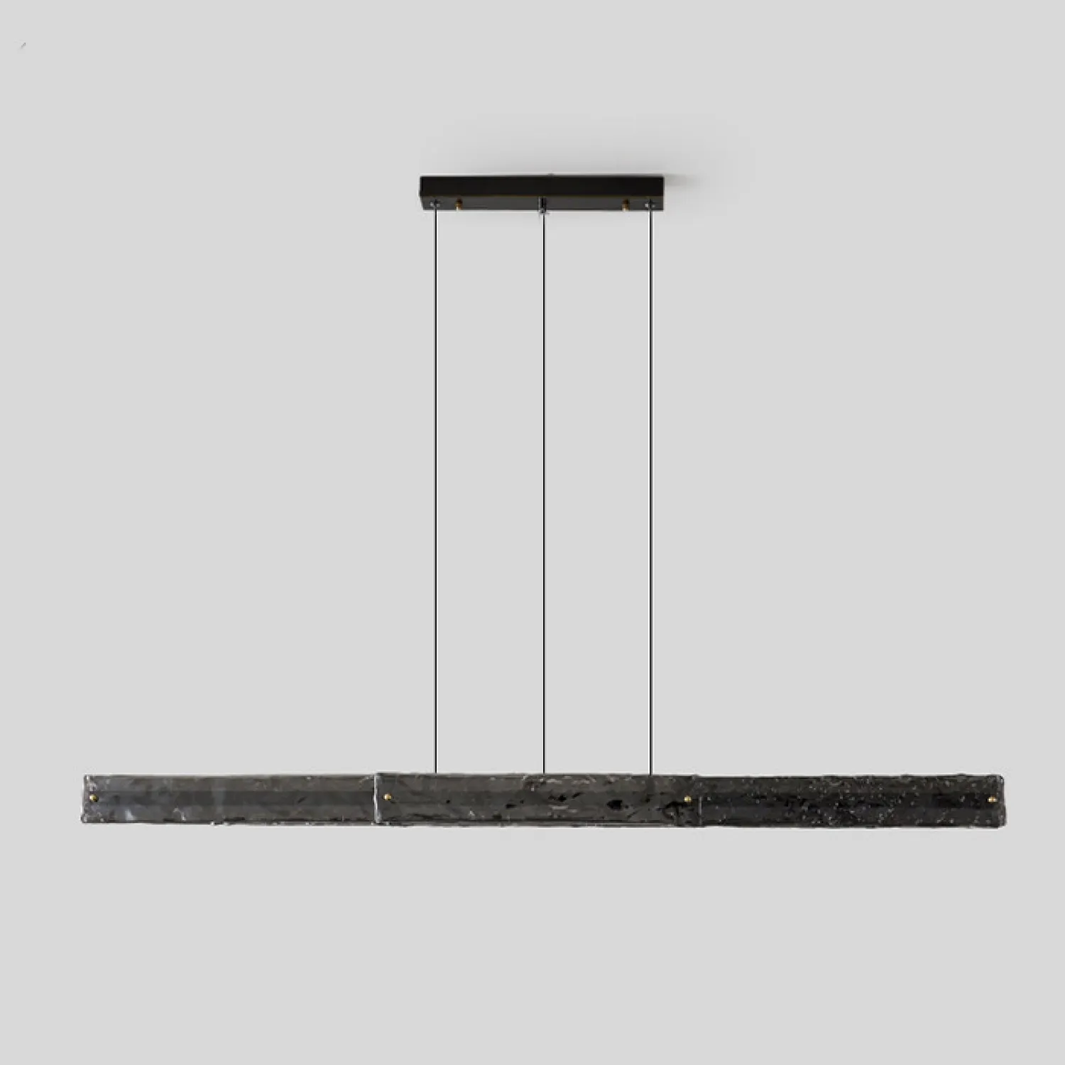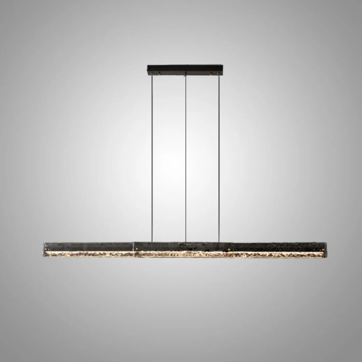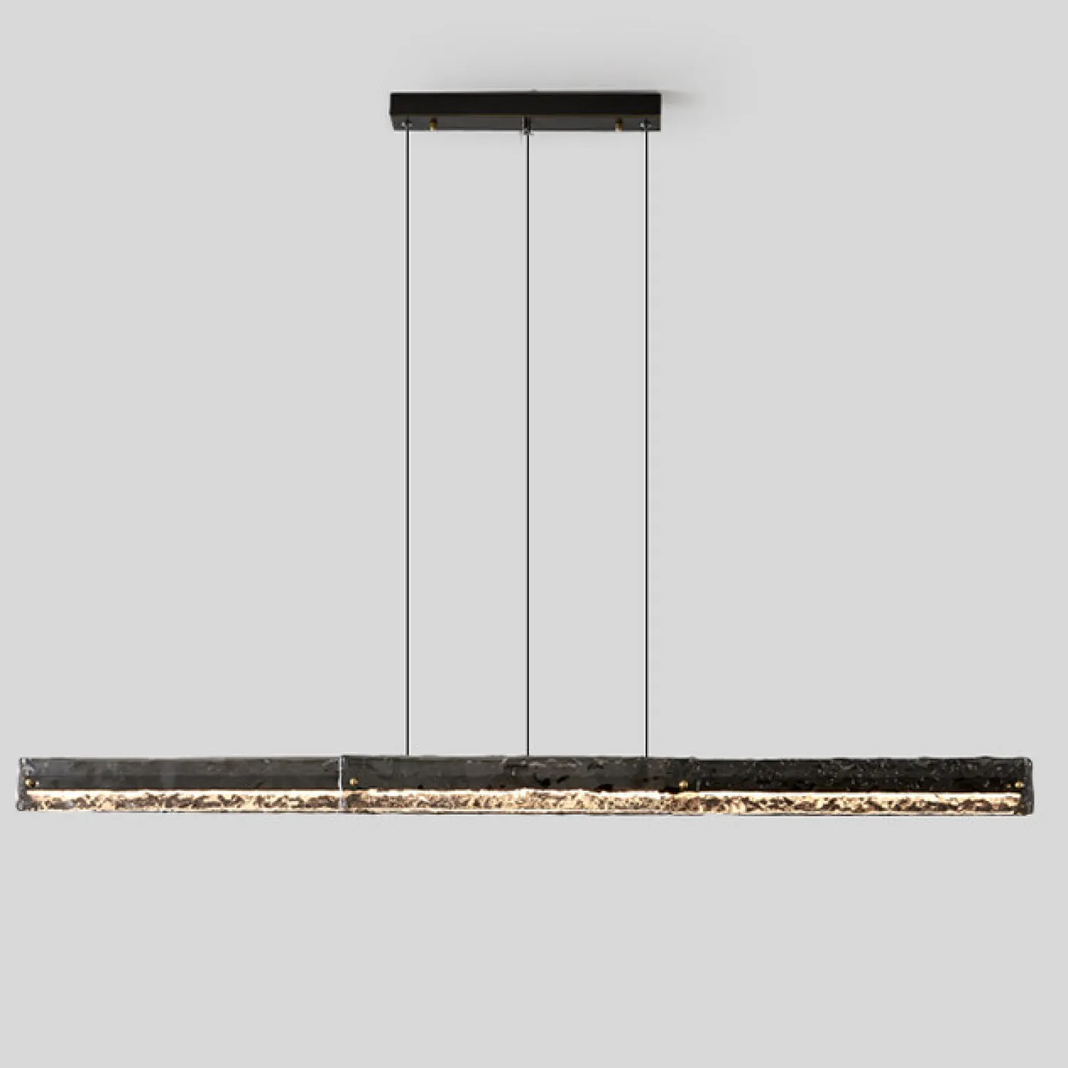 Стильный подвесной светильник в минималистичном дизайне — лаконичная длинная панель с фактурной стеклянной поверхностью. Подвесная конструкция на трёх тонких тросах придаёт изделию лёгкость и современность. Идеально подойдёт для освещения кухни, гостиной или офисного пространства. Создаёт равномерный световой поток, подчёркивая эстетику интерьера.