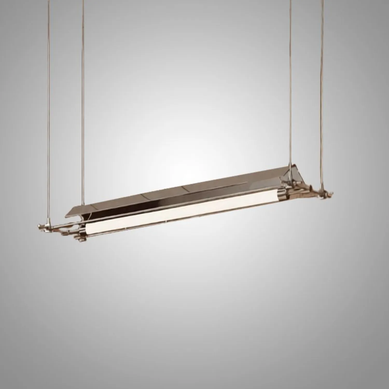 Стильный подвесной светильник с линейными световыми трубками в лаконичной чёрной металлической раме. Подвесы на тросах создают эффект невесомости и подчёркивают современный дизайн. Отлично подойдёт для кухни, столовой или офисного пространства — обеспечит равномерное освещение и добавит интерьеру минималистичный акцент. Сочетание функциональности и эстетики в одной модели.