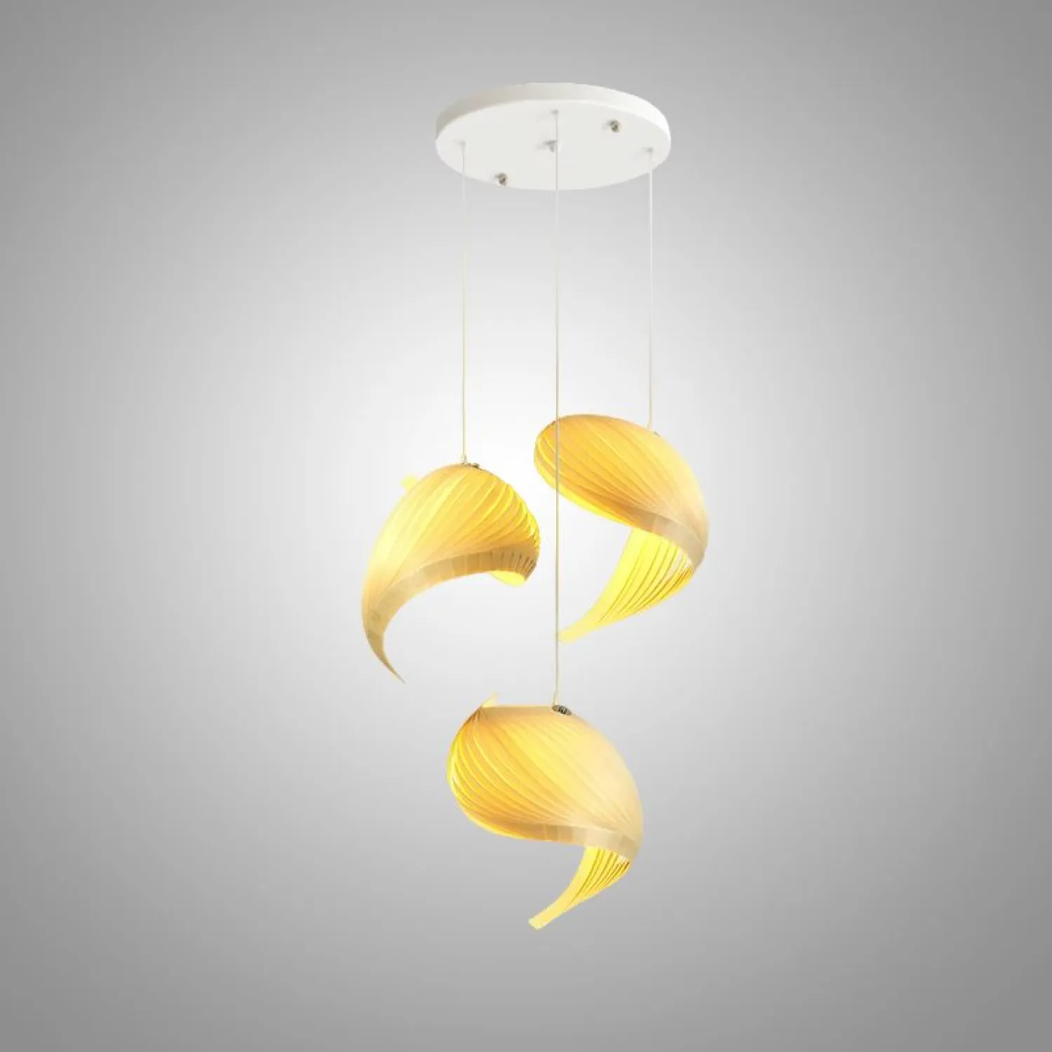 Подвесная люстра из дерева в форме изящных «раковин» с рельефными линиями. Создаёт тёплую игру света и тени, добавляет интерьеру лёгкость и стиль. Идеально для лестничного пролёта или гостиной.