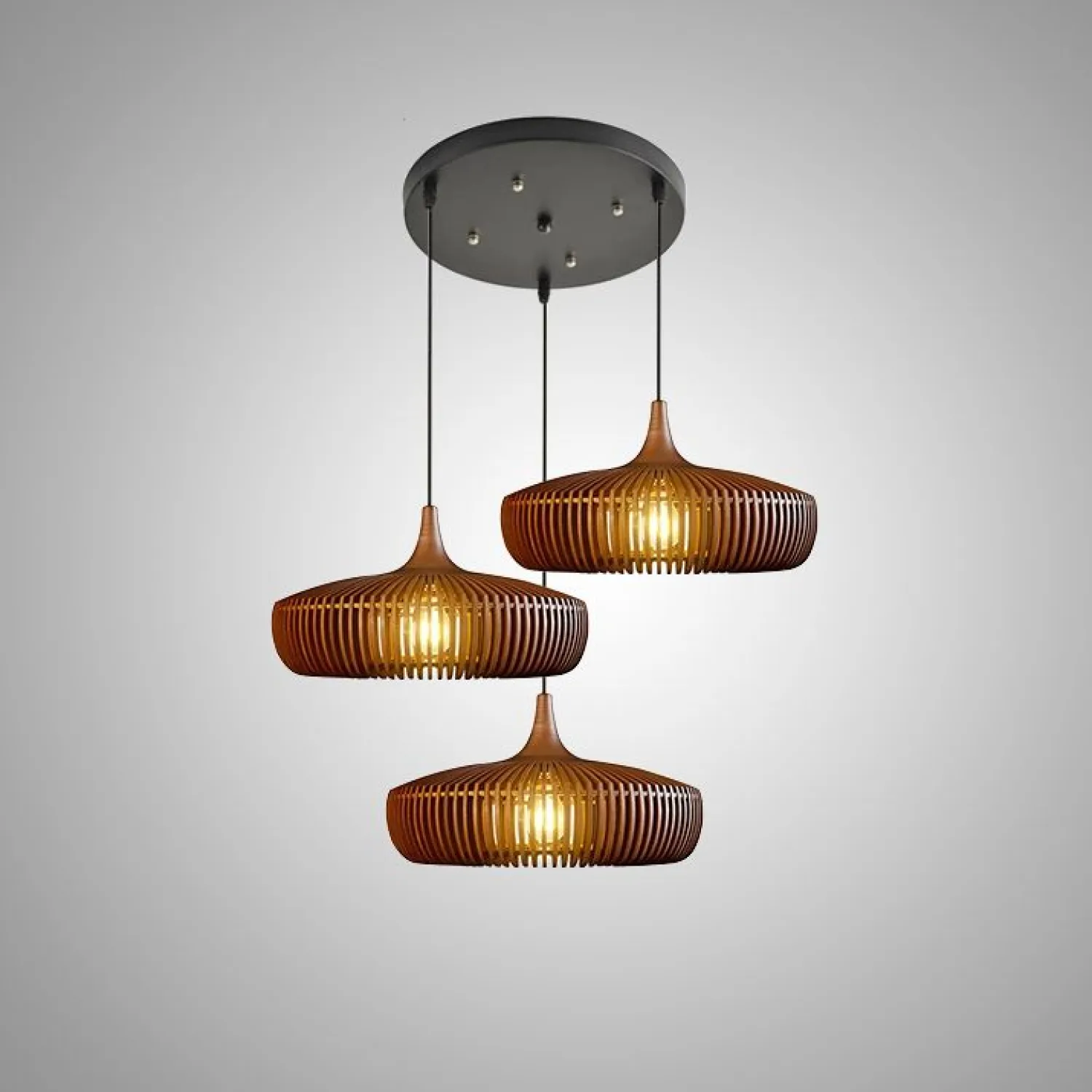 Подвесная деревянная люстра с ажурным дизайном создаёт мягкий, уютный свет. Её лаконичная форма и натуральная текстура гармонично вписываются в любой интерьер. Идеальный акцент для столовой или гостиной — сочетает стиль и экологичность.