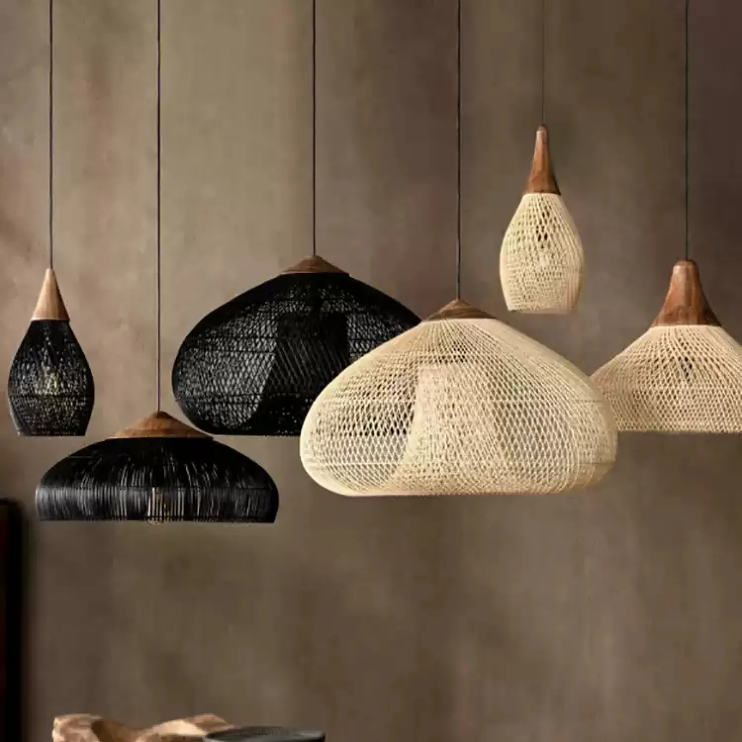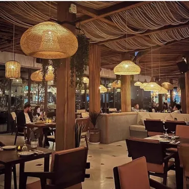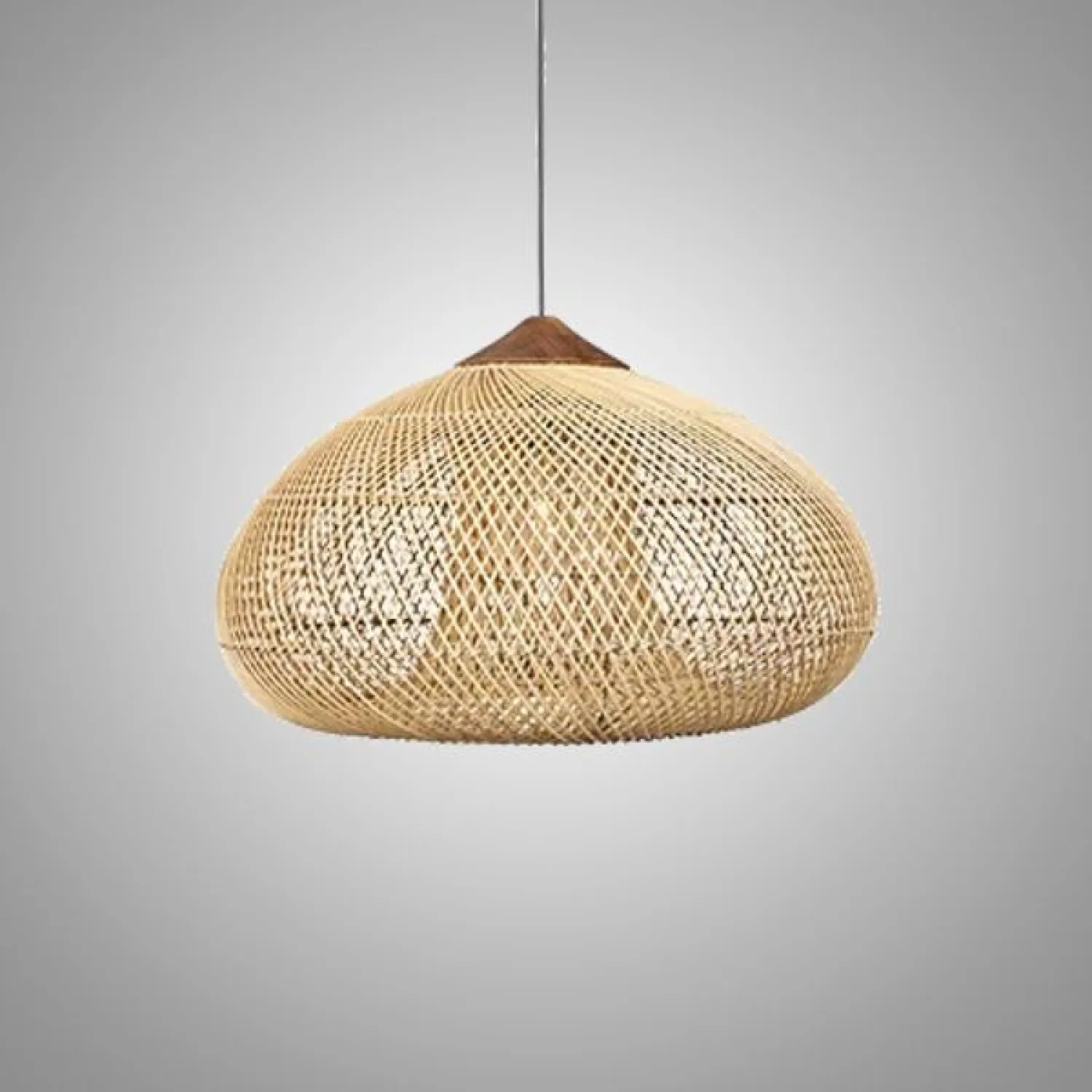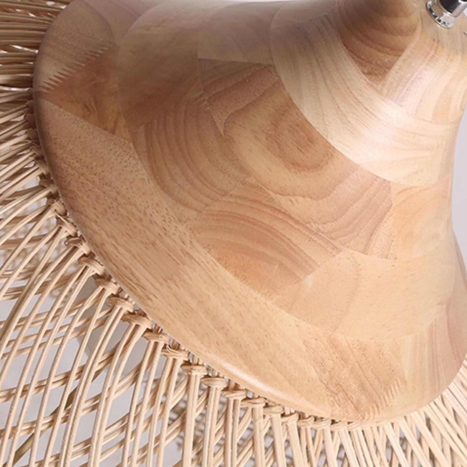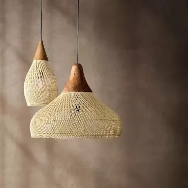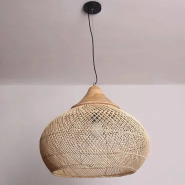 Подвесная люстра из ротанга с ажурным плетением и деревянным верхом создаёт мягкий, рассеянный свет. Её плавные линии и натуральная текстура гармонично вписываются в эко-интерьер, добавляя уюта и лёгкости пространству. Идеальный акцент для гостиной, столовой или зоны отдыха.