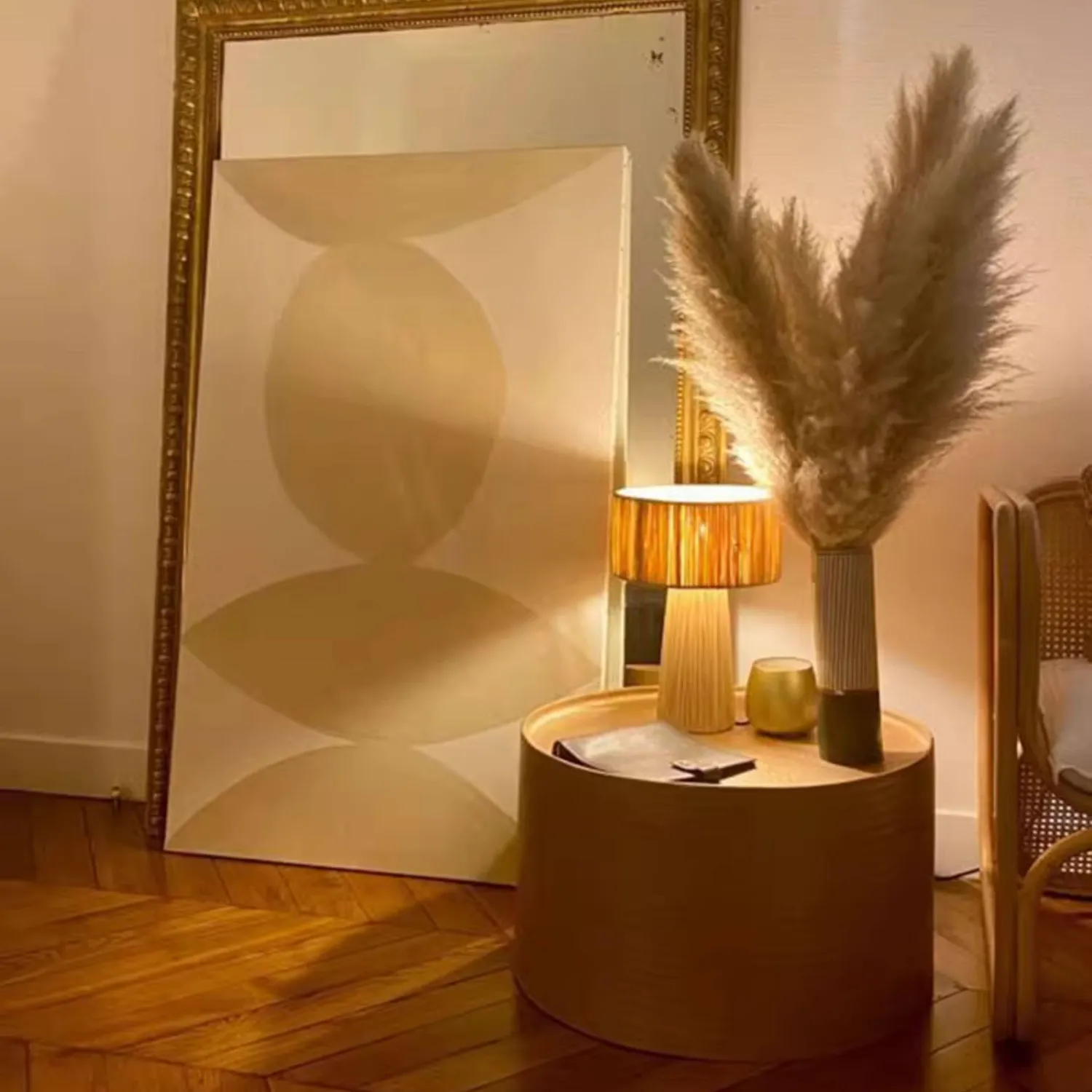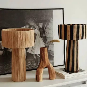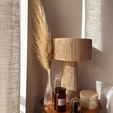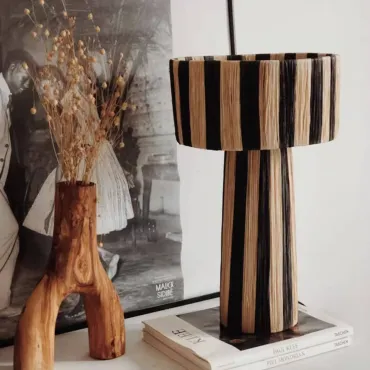 Настольная лампа из ротанга отличается лаконичным и стильным дизайном. Текстурированный абажур и основание в естественных бежевых тонах либо в полоску создают уютную атмосферу. Идеальный акцент для интерьера в эко- или бохо-стиле. Есть вариант напольное торшера.