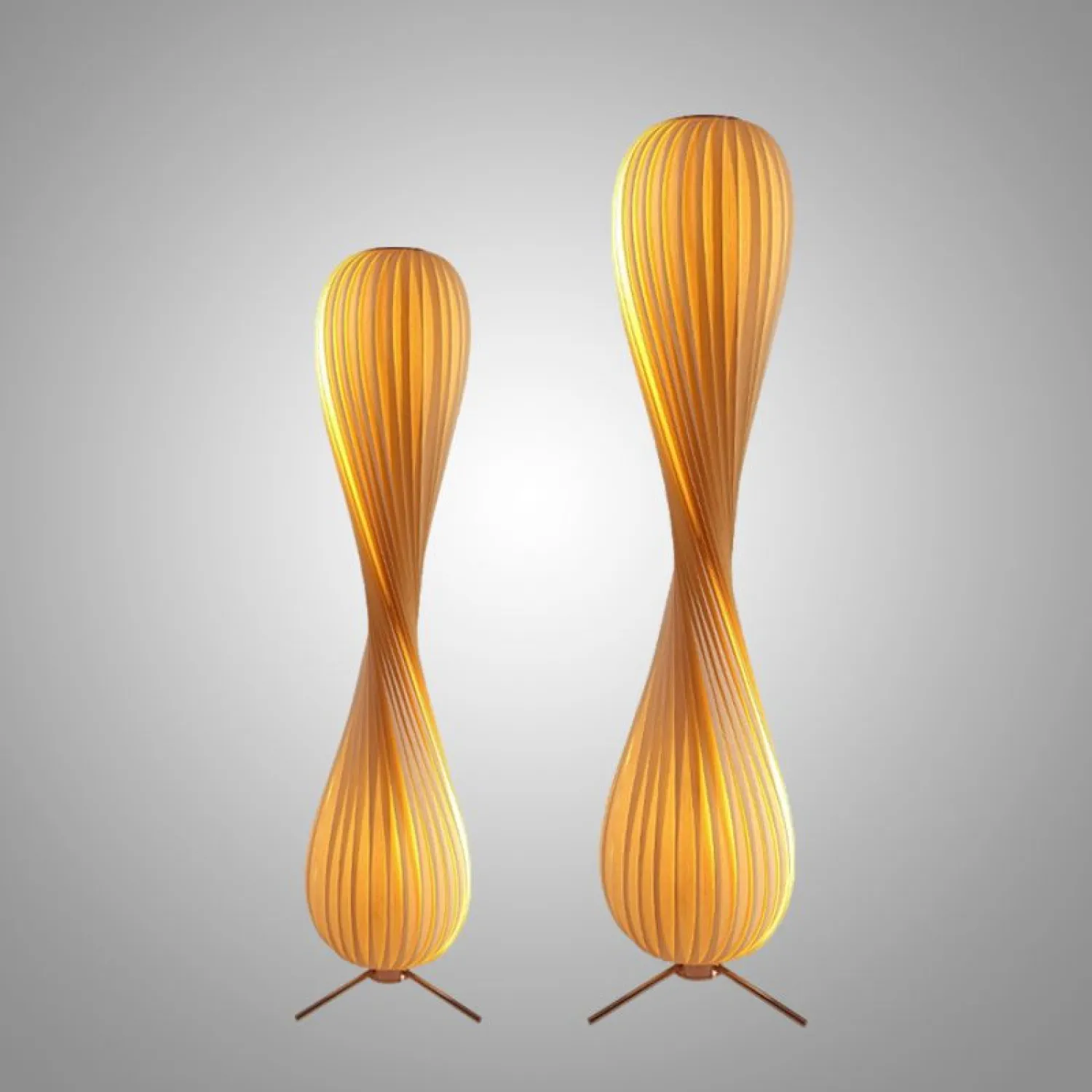 Элегантный напольный торшер из натурального дерева привлекает внимание изысканной формой с плавными изгибами. Тёплый рассеянный свет мягко подчёркивает текстуру материала, создавая уютную атмосферу в гостиной или кабинете. Прочная конструкция на металлической основе сочетает в себе природную эстетику и современный дизайн. Идеальный акцент для интерьера в скандинавском или эко-стиле.