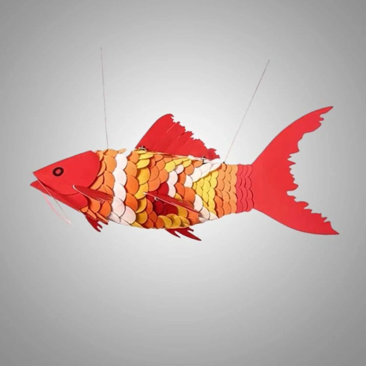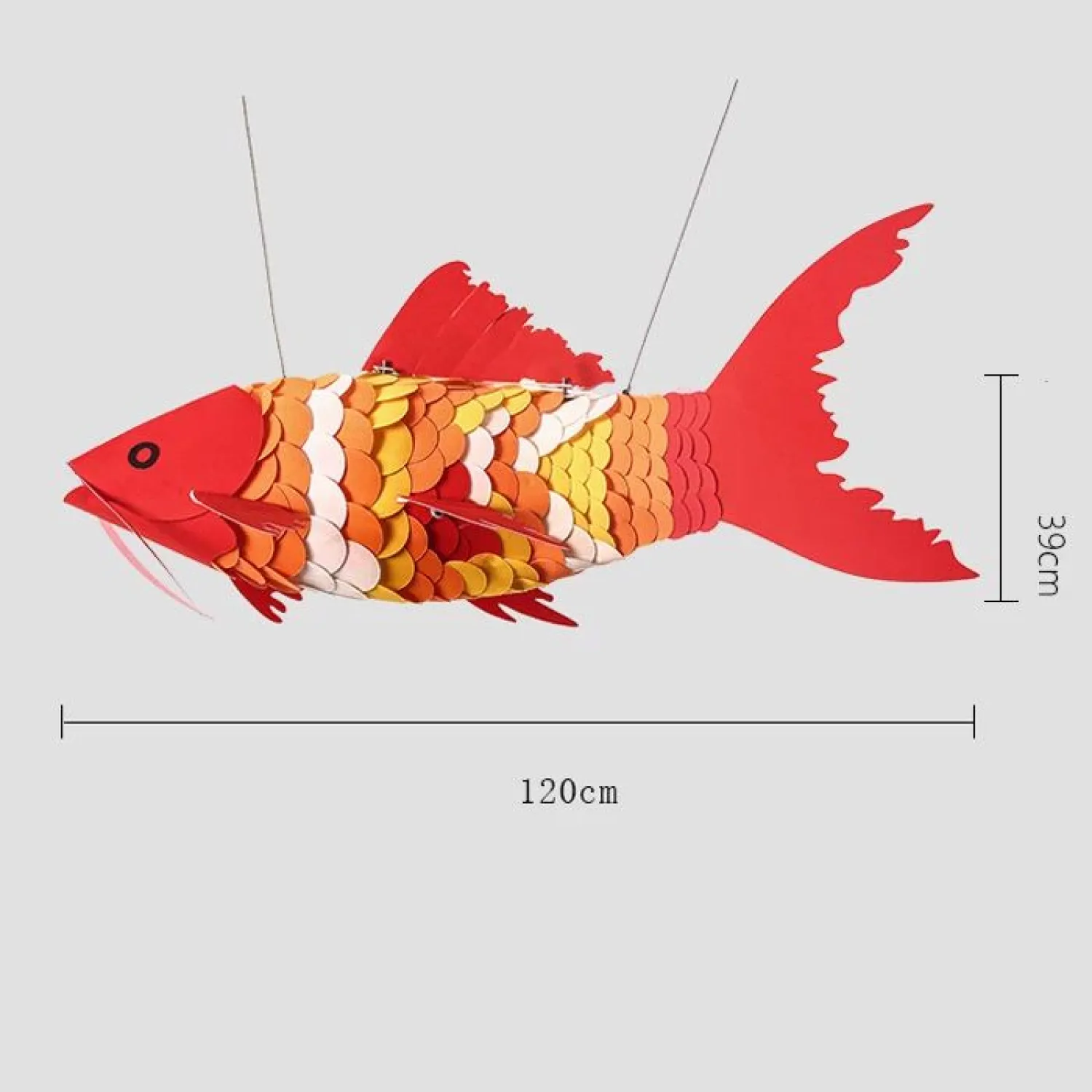 Люстра в виде рыбки Кои из текстиля с металлической фурнитурой сочетает в себе лёгкость и прочность. Текстильные элементы создают мягкое рассеянное освещение, а надёжная металлическая основа гарантирует долговечность конструкции. Идеальный акцент для гостиной, спальни или кафе — добавляет уюта и стиля в любой интерьер.