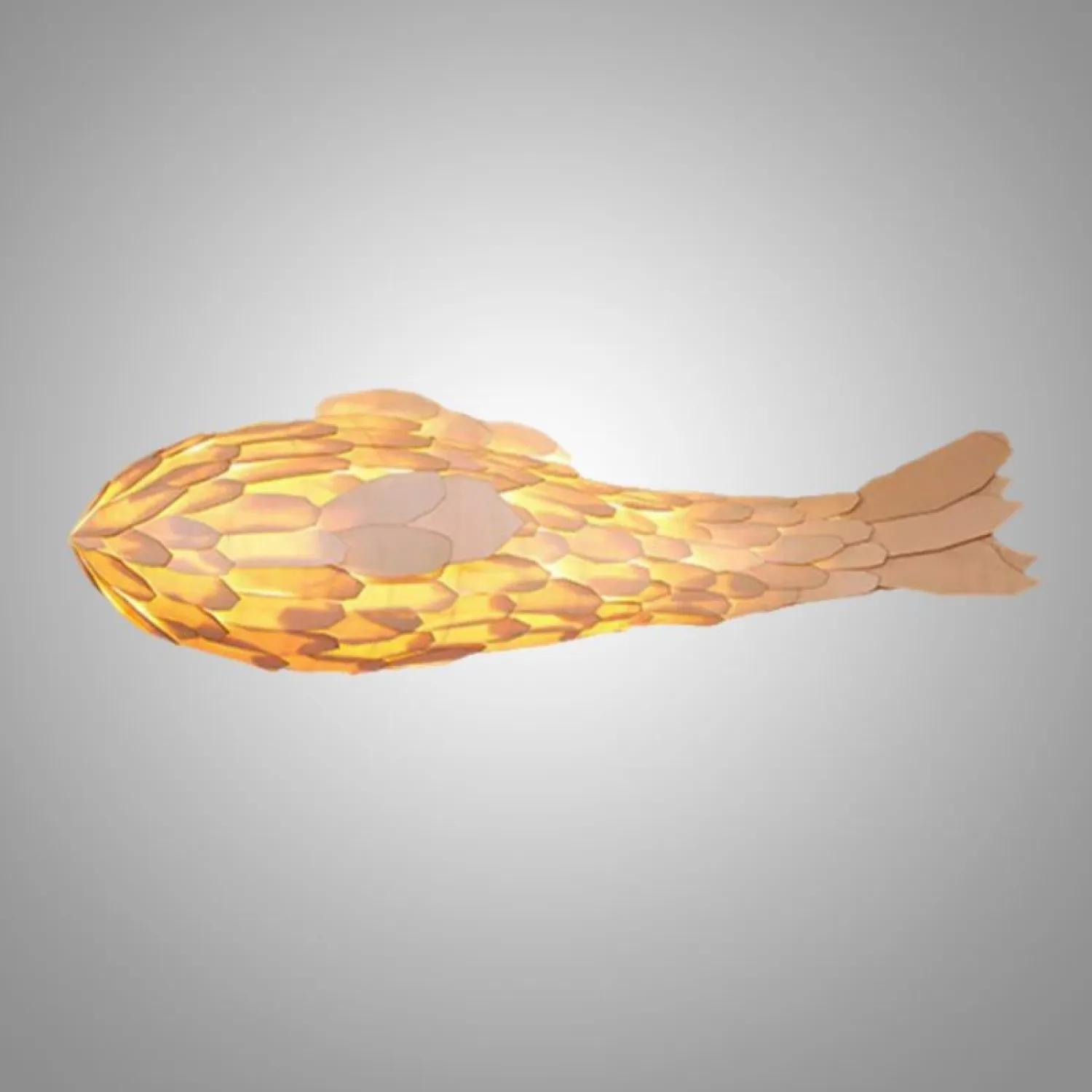 Уникальная люстра в форме рыбы, выполненная из дерева с элементами плетения. Оснащена LED-подсветкой, создающей тёплый и уютный свет. Элегантный дизайн станет выразительным акцентом в интерьере гостиной, ресторана или отеля. Ручная работа, натуральный древесный оттенок.