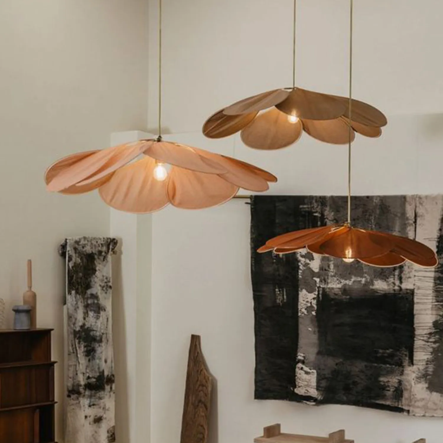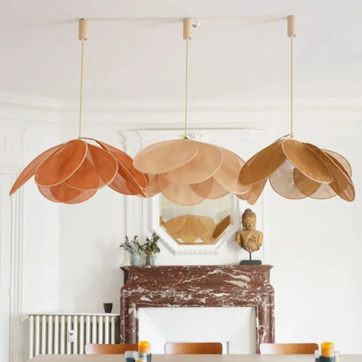 Подвесной светильник придаст любому интерьеру изысканность. Его уникальная композиция из полированного металла и ткани создает изящный цветочный узор, наполняя комнату мягким, приглушенным светом и тонкими тенями. Каплевидный элемент в ретро-стиле напоминает уютные спальни с жалюзи на окнах, создавая атмосферу утонченности и эксклюзивности.