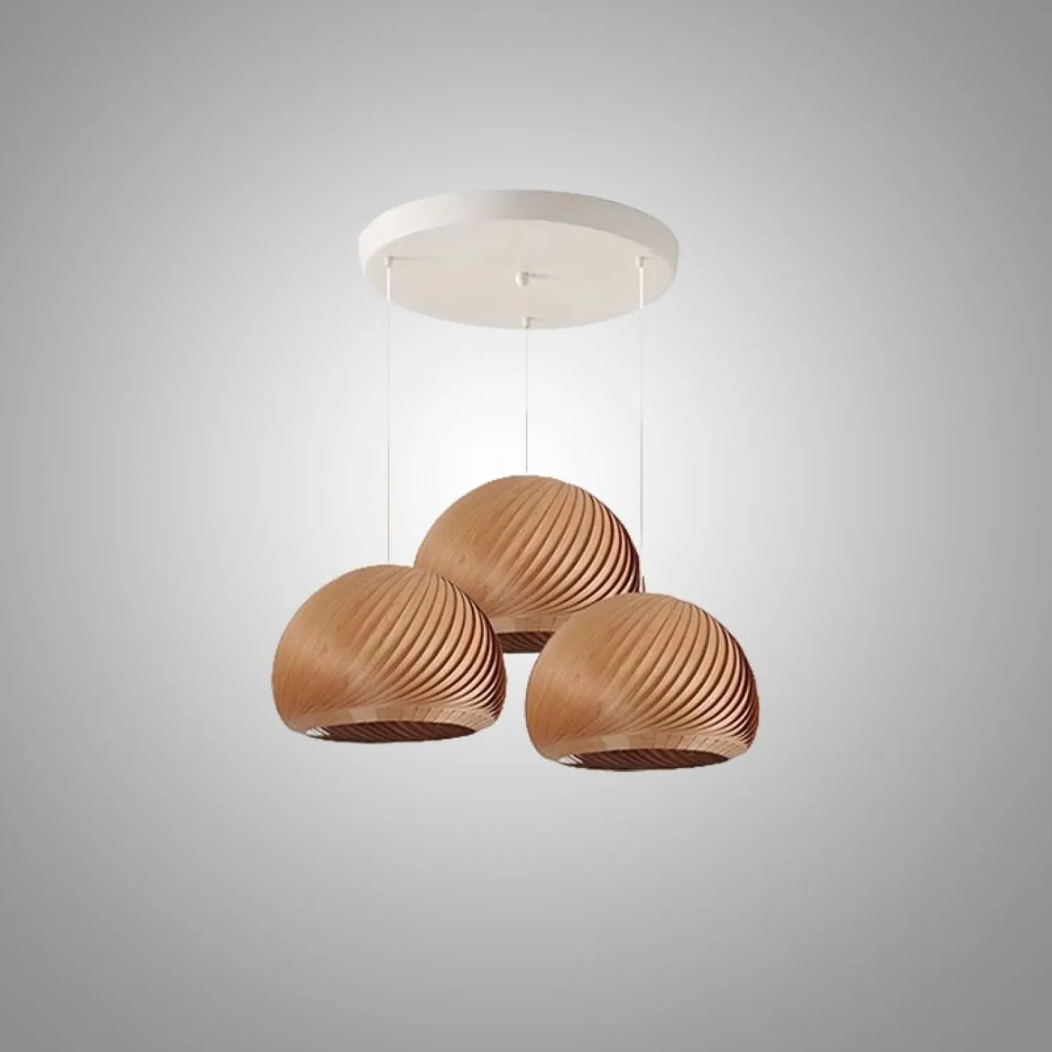 Элегантные подвесные светильники из шпона в форме полусфер создают мягкое, уютное освещение. Их текстурированный дизайн придаёт интерьеру особый шарм. Идеально подойдут для кухни, гостиной или столовой — добавят тепла и стиля в любое пространство. Лёгкая геометрия и натуральный оттенок гармонично сочетаются с современным декором.