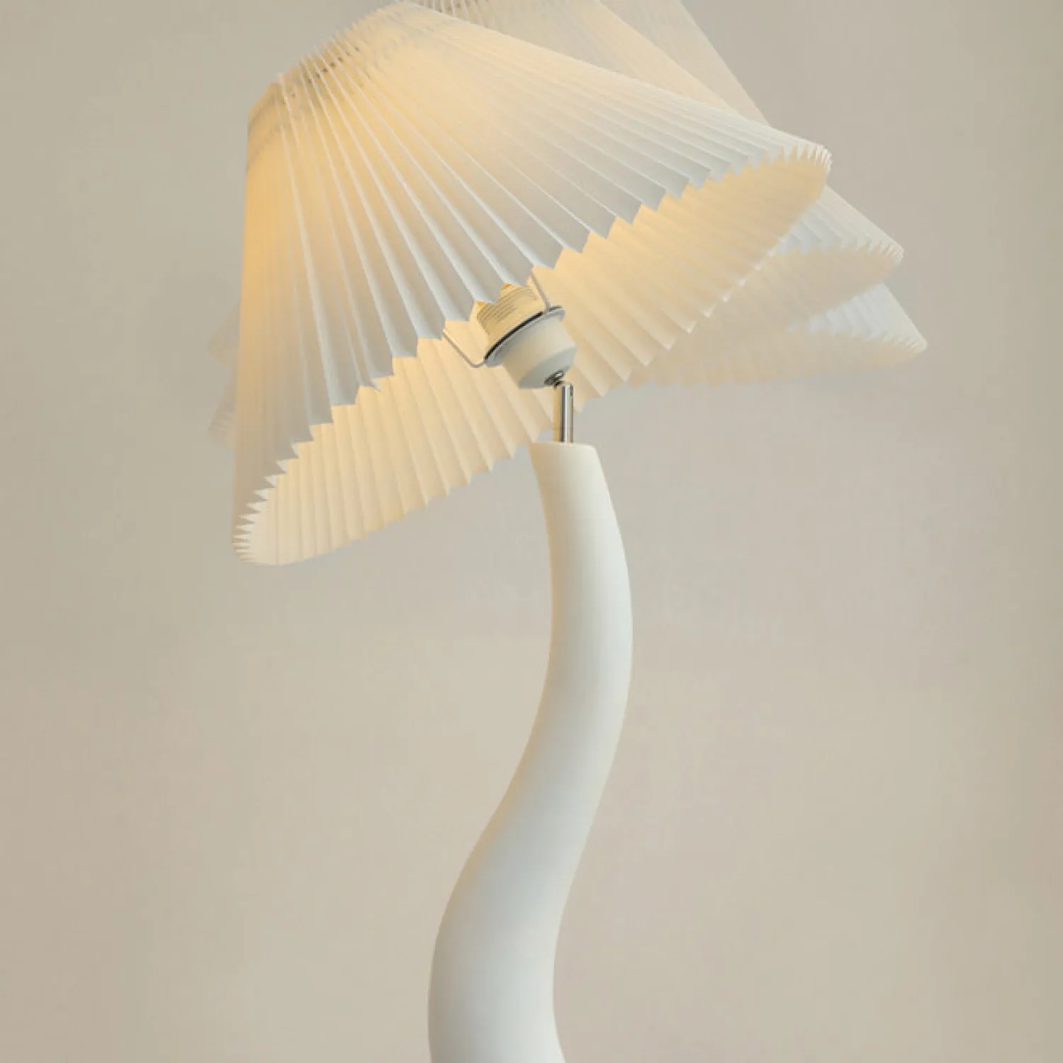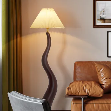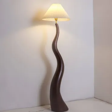 Элегантный напольный торшер с волнообразной ножкой из смолы и плиссированным абажуром. Создаёт мягкое, уютное освещение, подчёркивая современный стиль интерьера. Идеально подойдёт для гостиной, спальни или уголка для чтения. Сочетание натурального материала и изящного дизайна добавит пространству тепла и изысканности.