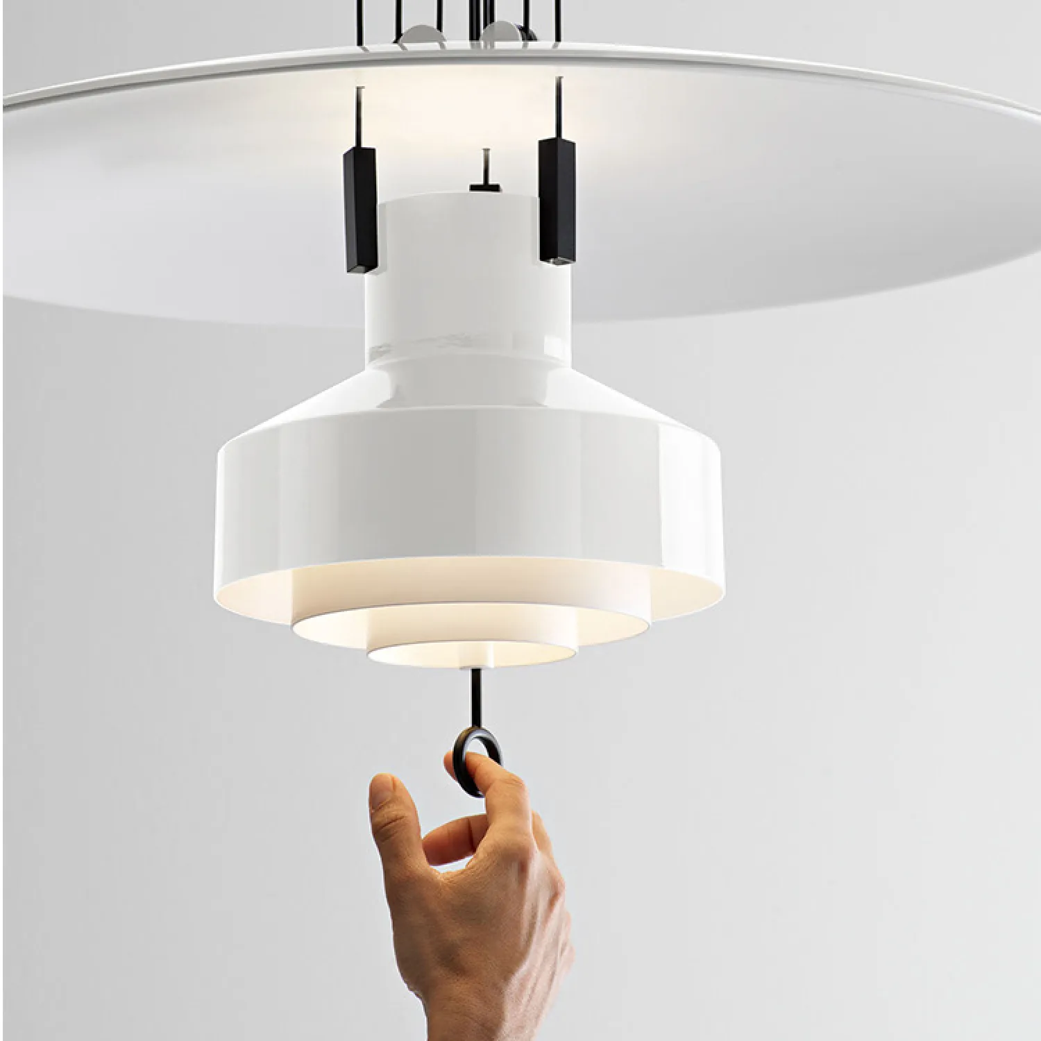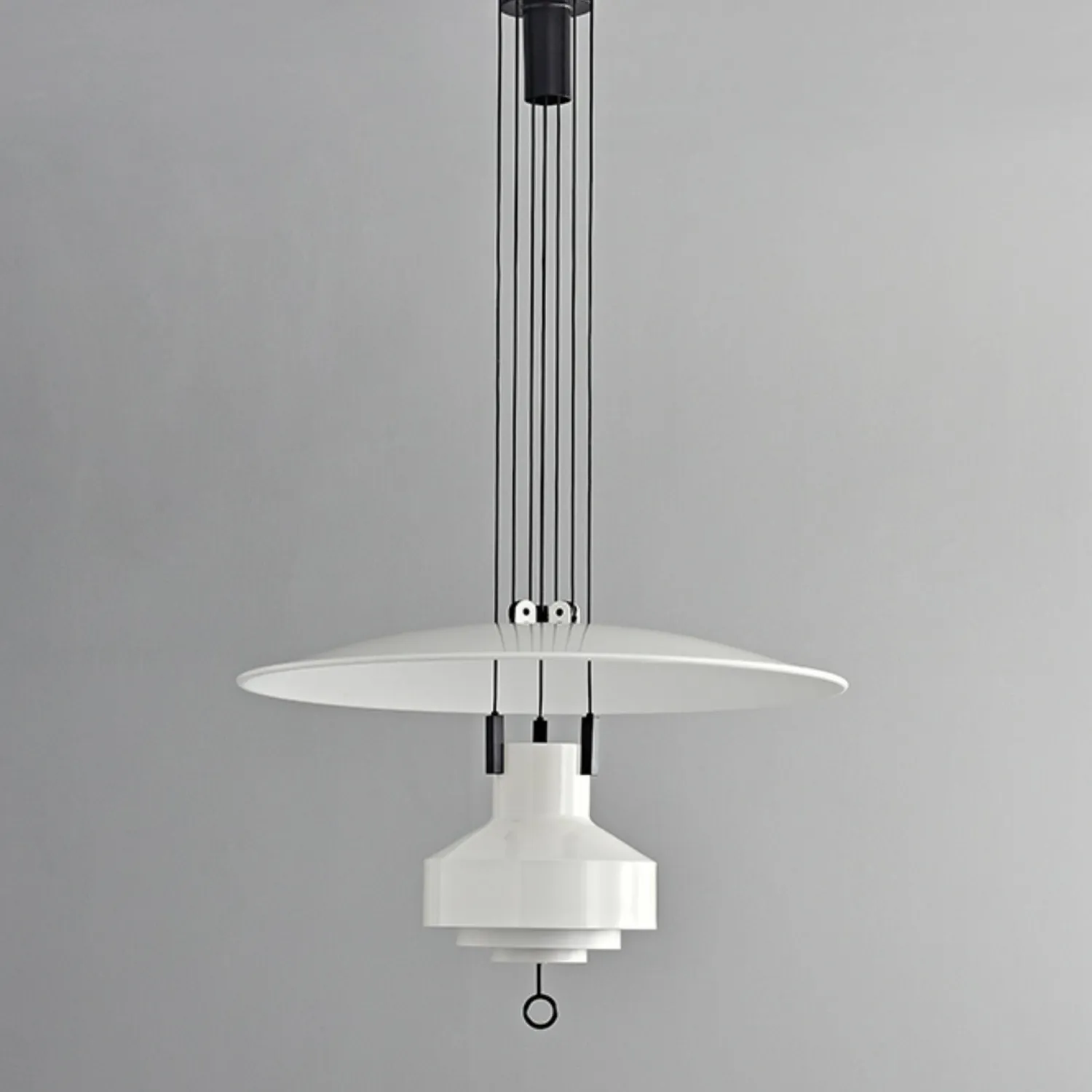 Стильный подвесной светильник в ярком исполнении сочетает лаконичный дизайн и функциональность. Конструкция с широким верхним плафоном и выразительным цилиндрическим элементом создаёт равномерное освещение. Чёрные подвесы добавляют контраста и подчёркивают современный стиль. Идеальный акцент для кухни, столовой или гостиной.