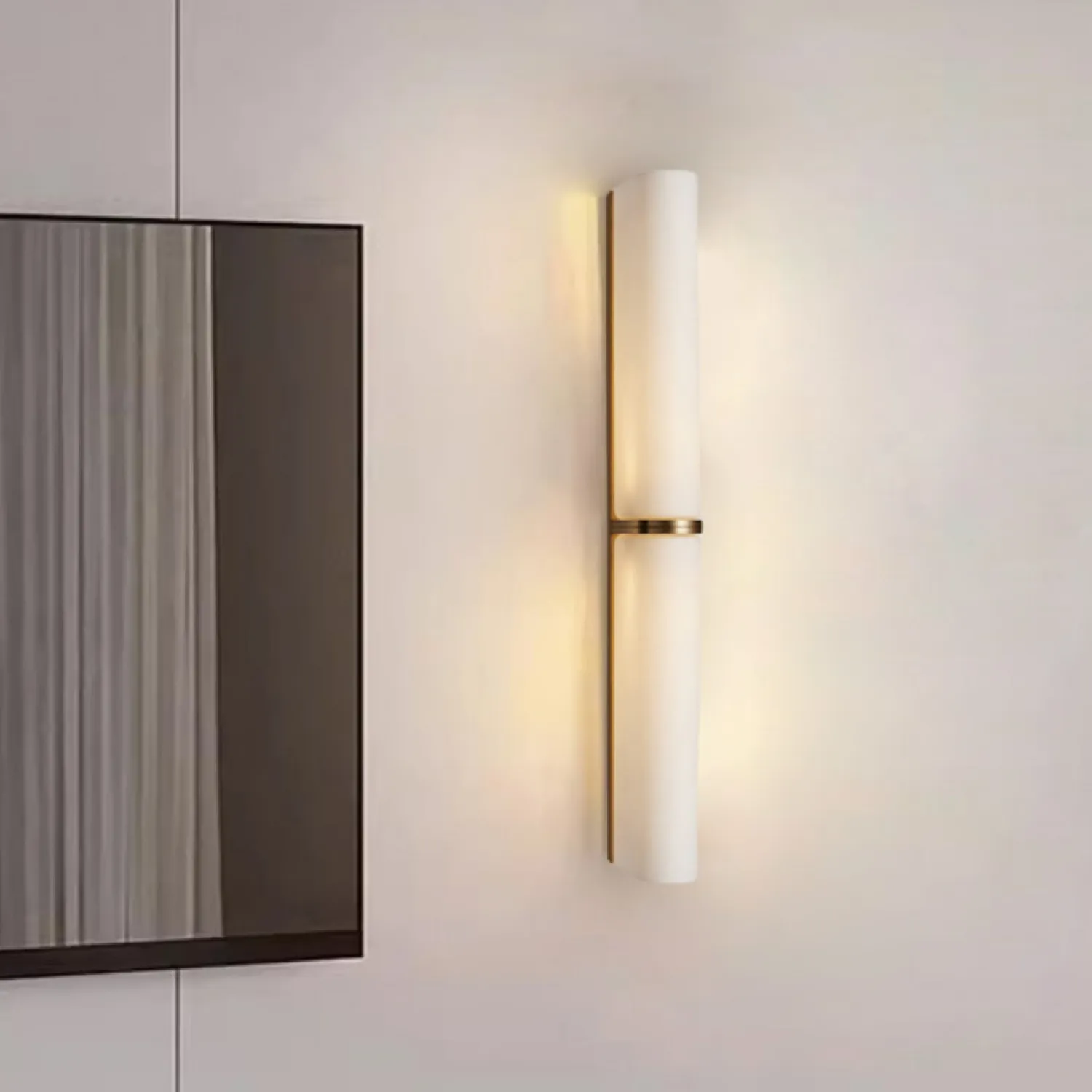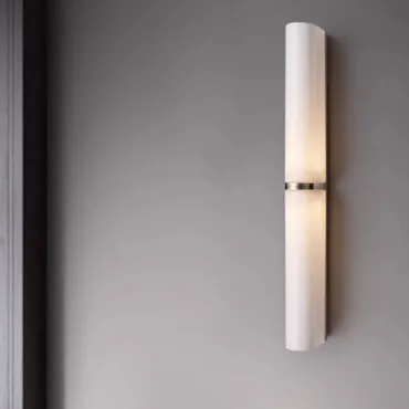Элегантный настенный светильник в современном стиле с удлинённым цилиндрическим плафоном. Украшен тонкой металлической вставкой посередине, что придаёт изделию лаконичность и изысканность. Создаёт мягкий, рассеянный свет, идеально подходящий для спальни или гостиной. Компактный, но выразительный дизайн впишется в любой минималистичный интерьер.