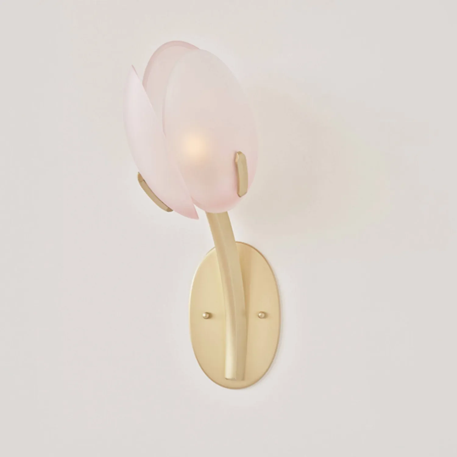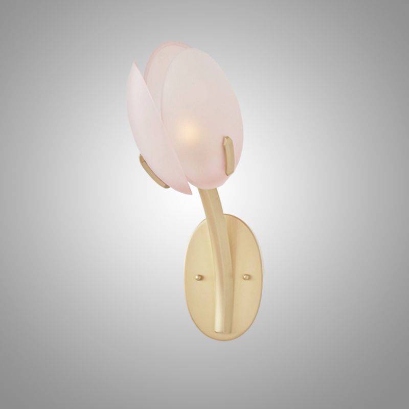 Элегантный настенный светильник в виде бутонов тюльпана. Основание выполнено из золотистого металла, плафоны — из полупрозрачного стекла. Создаёт мягкий, уютный свет и станет изысканным акцентом в интерьере спальни, гостиной или прихожей. Сочетает в себе утончённость дизайна и функциональность.