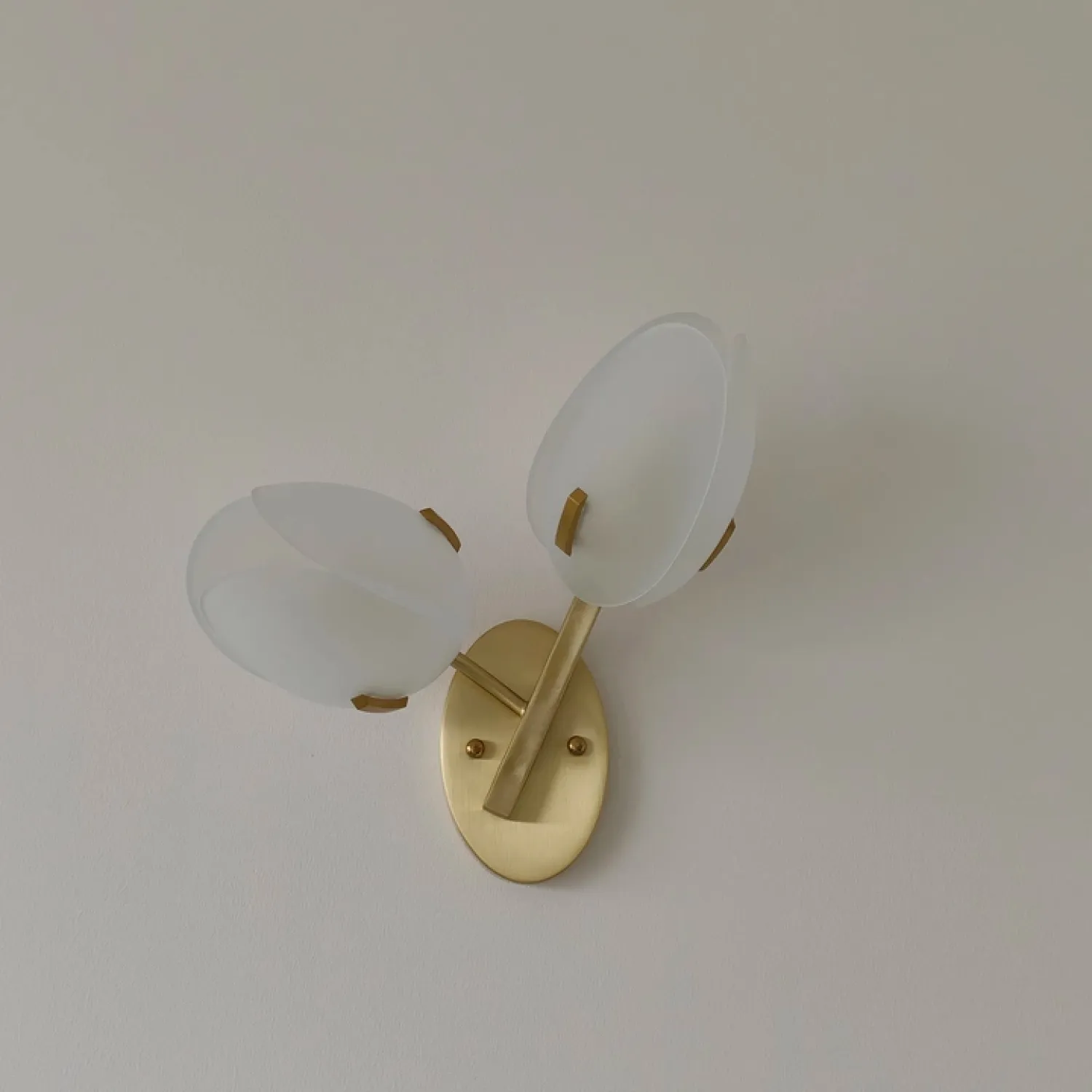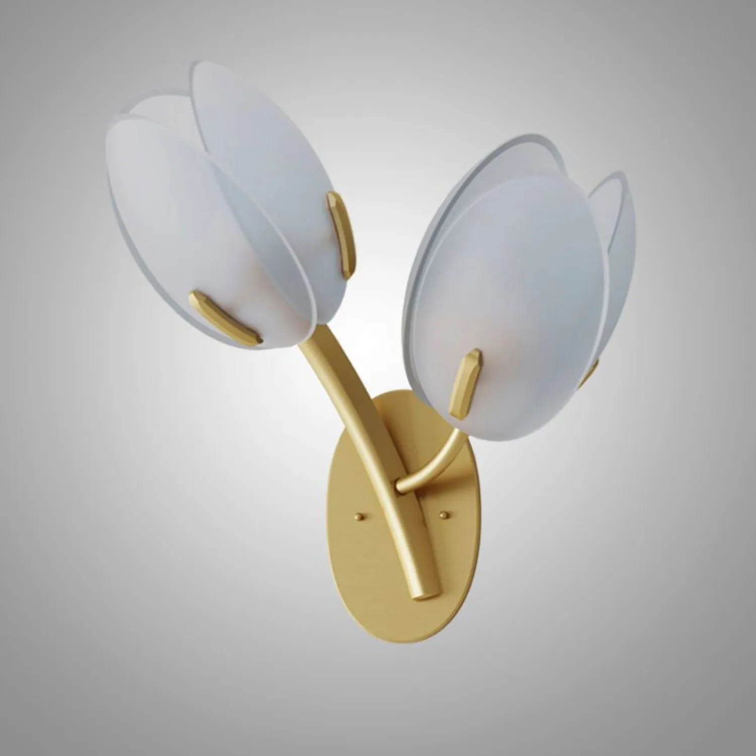 Элегантный настенный светильник в виде бутонов тюльпана. Основание выполнено из золотистого металла, плафоны — из полупрозрачного стекла. Создаёт мягкий, уютный свет и станет изысканным акцентом в интерьере спальни, гостиной или прихожей. Сочетает в себе утончённость дизайна и функциональность.
