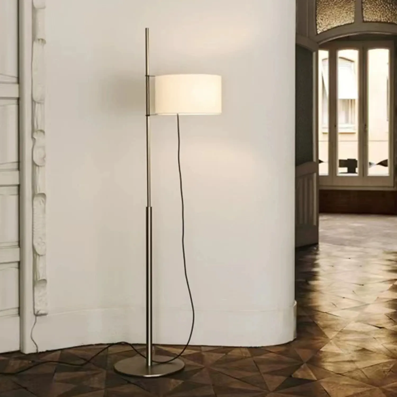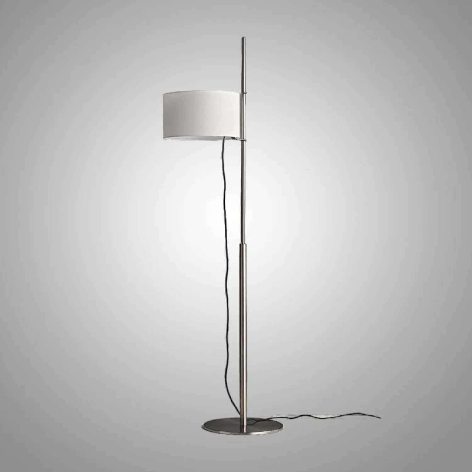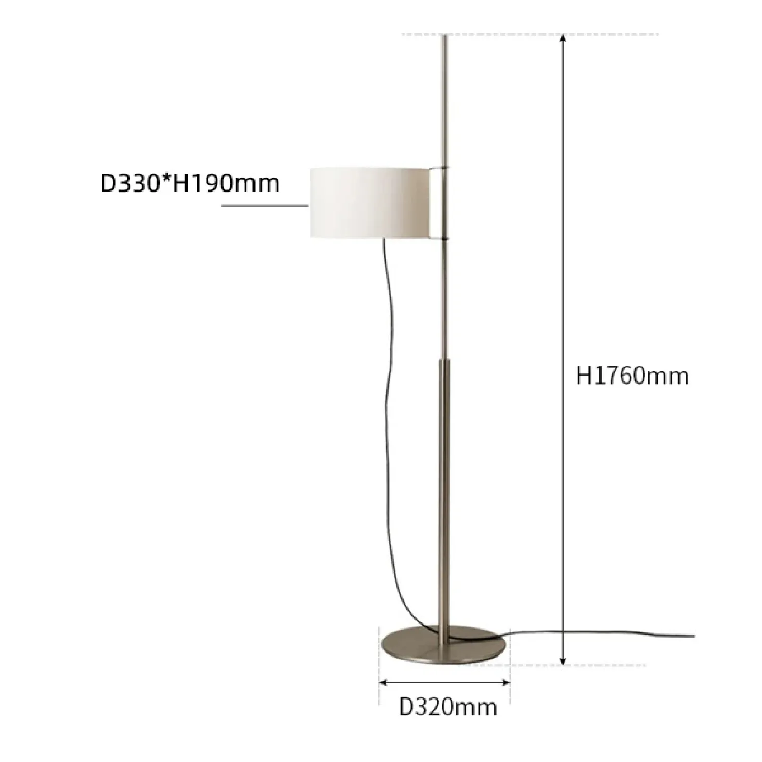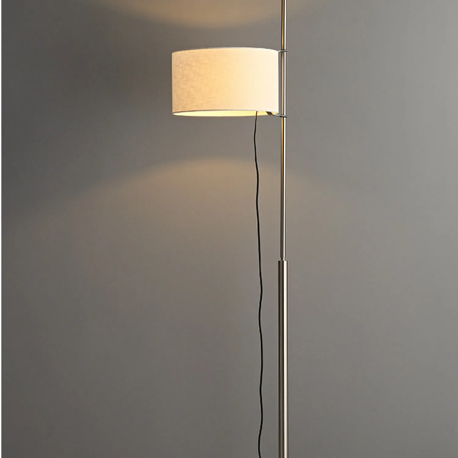 Элегантный торшер в минималистичном стиле с цилиндрическим абажуром из светлой ткани. Металлическая стойка лаконичной формы дополнена круглой основой, обеспечивающей устойчивость. Создаёт мягкий, рассеянный свет, идеально подходящий для гостиной или зоны отдыха. Сочетает функциональность и современный дизайн.