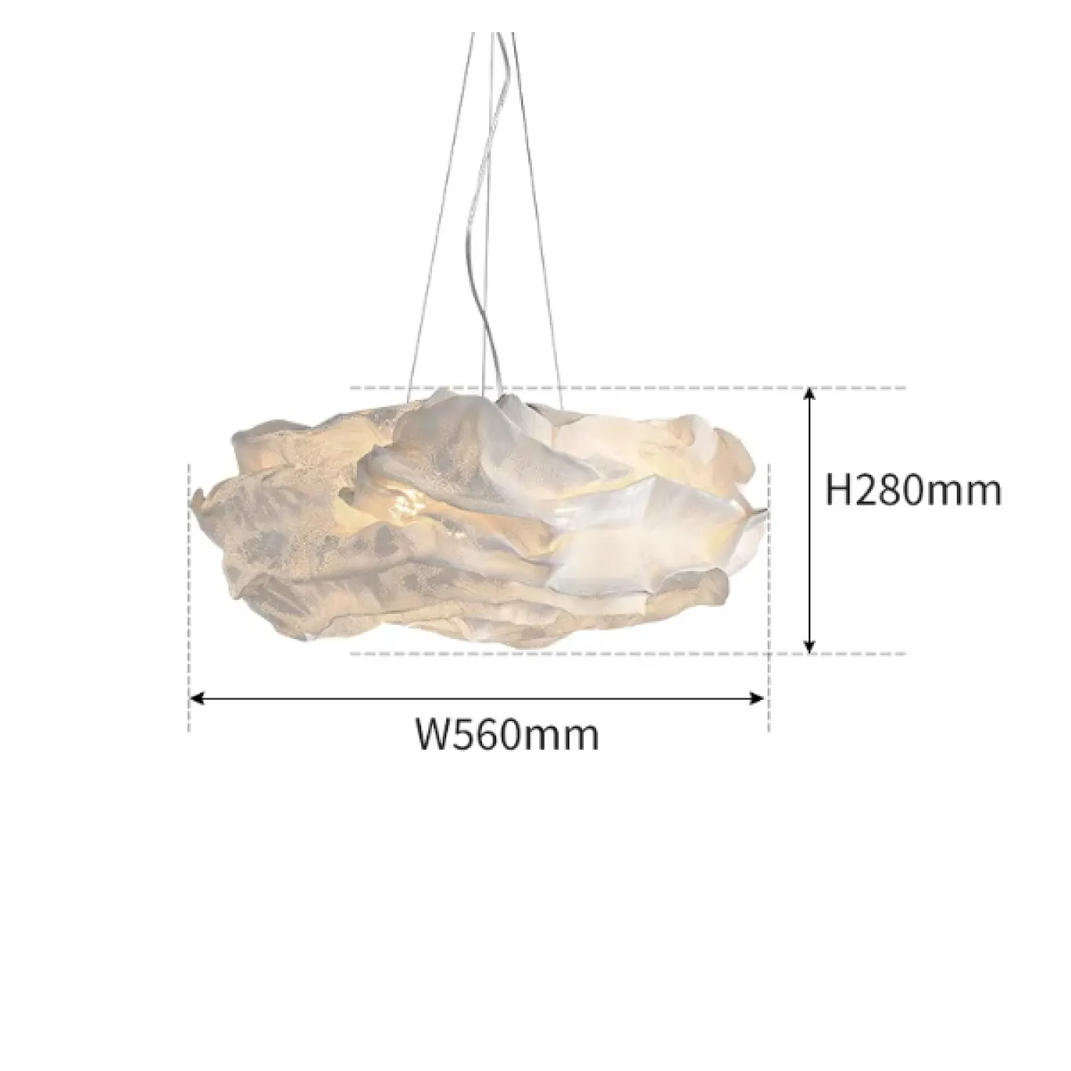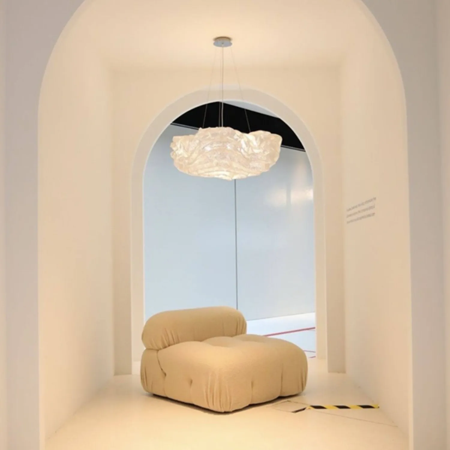 Элегантная подвесная люстра из нержавеющей стали с оригинальным дизайном в виде объёмного «облака» из текстурированного материала. Крепится к потолку на трёх тонких тросах, создавая лёгкую и воздушную композицию. Мягкий рассеянный свет делает её идеальным акцентом для гостиной или столовой в современном стиле.