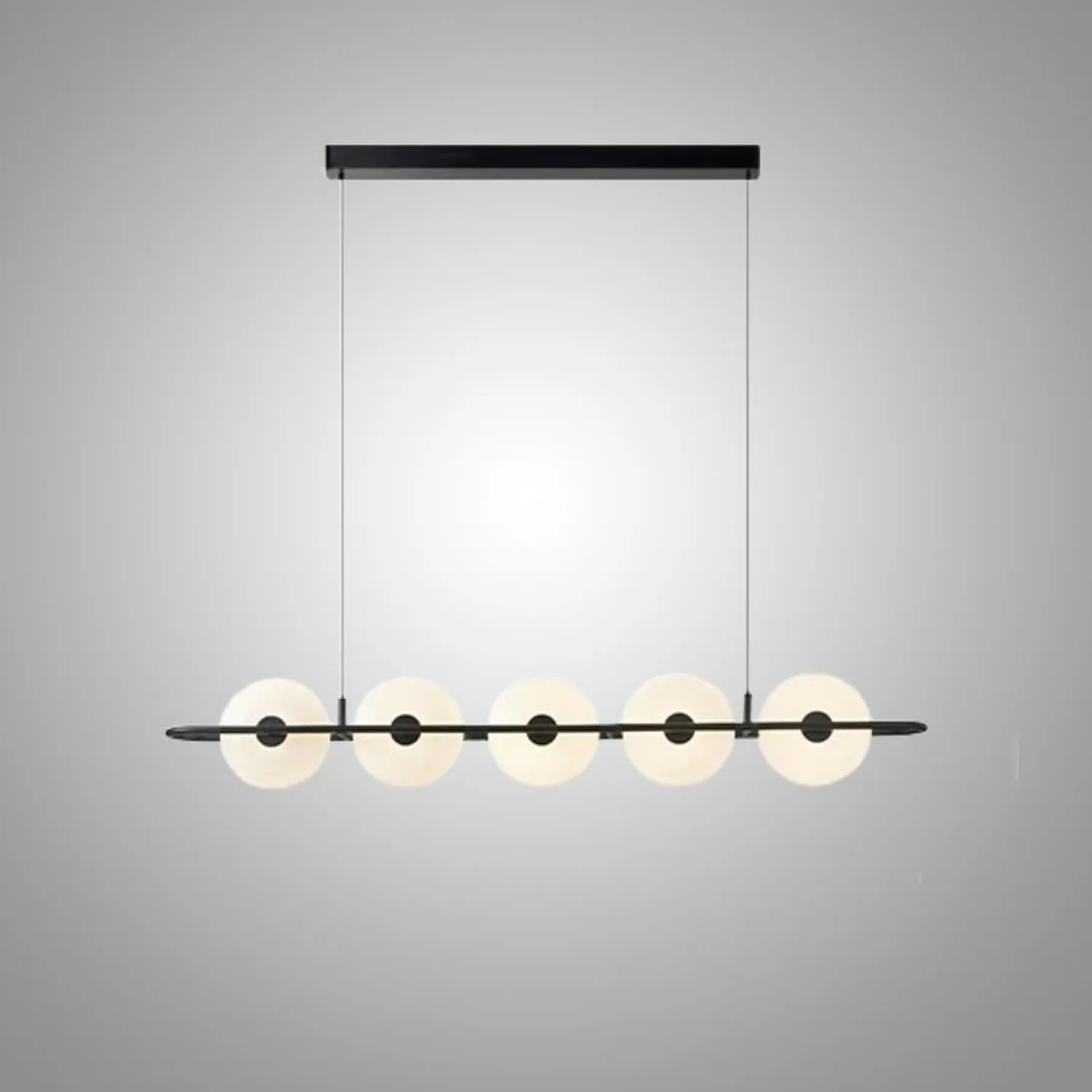 Подвесной светильник от ZUI Lighting — образец современного минимализма. Конструкция состоит из горизонтальной металлической планки с круглыми матовыми плафонами, равномерно расположенными вдоль неё. Создаёт мягкий, равномерный свет, подчёркивая лаконичность интерьера. Отлично подойдёт для столовой или гостиной зоны, добавляя пространству стильный акцент.