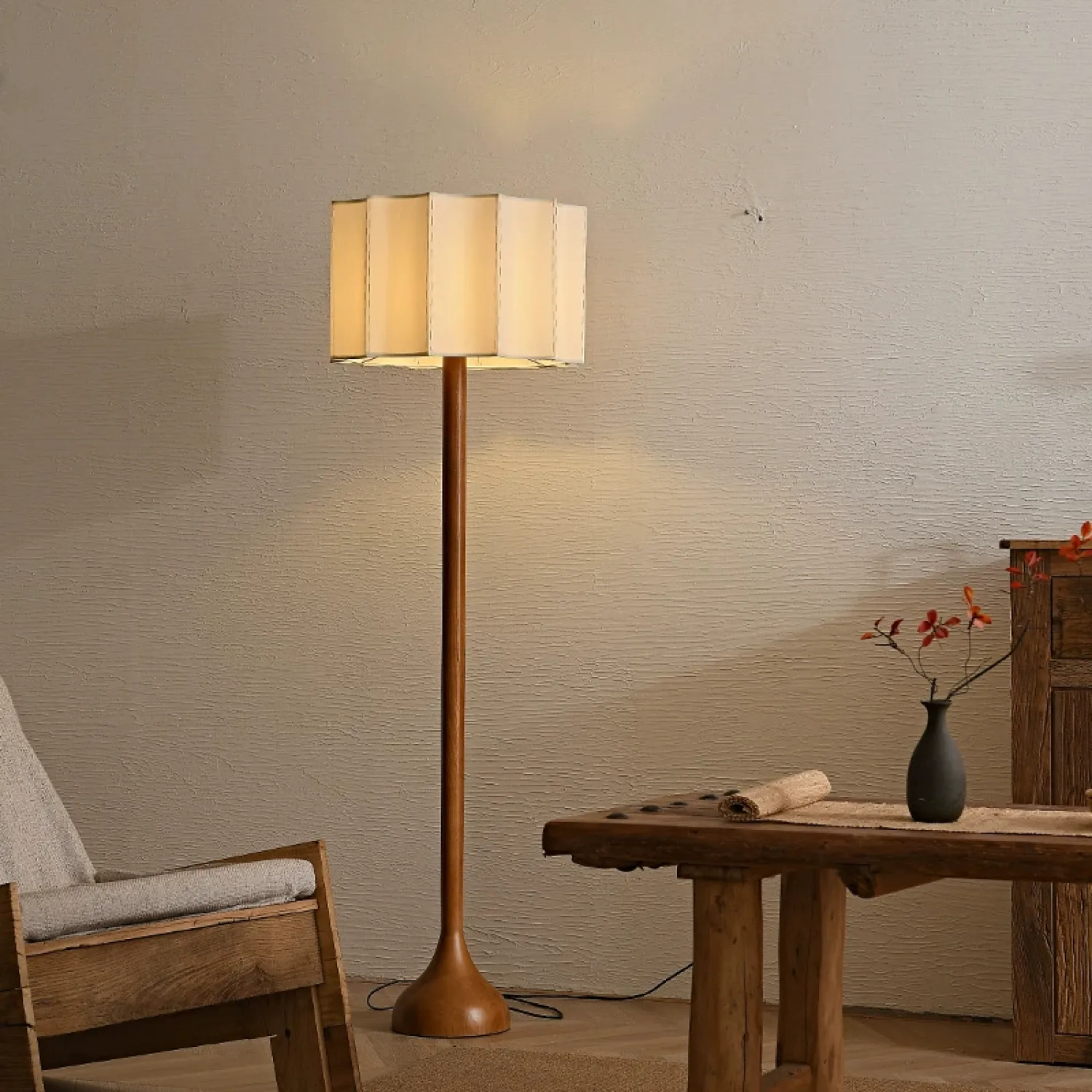 Элегантный торшер сочетает в себе природную теплоту ясеня и лаконичность текстильного абажура. Основание из массива ясеня с уникальным древесным рисунком придаёт изделию особый шарм, а чёрная матовая стойка и абажур из текстиля создают современный контраст. Полукруглый абажур мягко рассеивает свет, создавая уютную атмосферу. Этот торшер станет стильным акцентом в интерьере, объединяя натуральные и индустриальные мотивы.