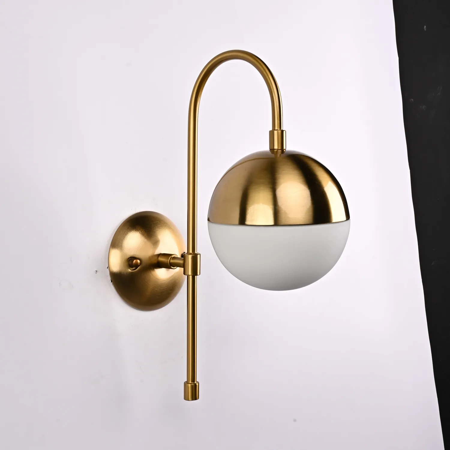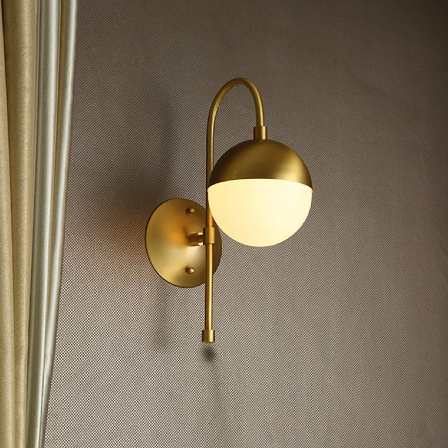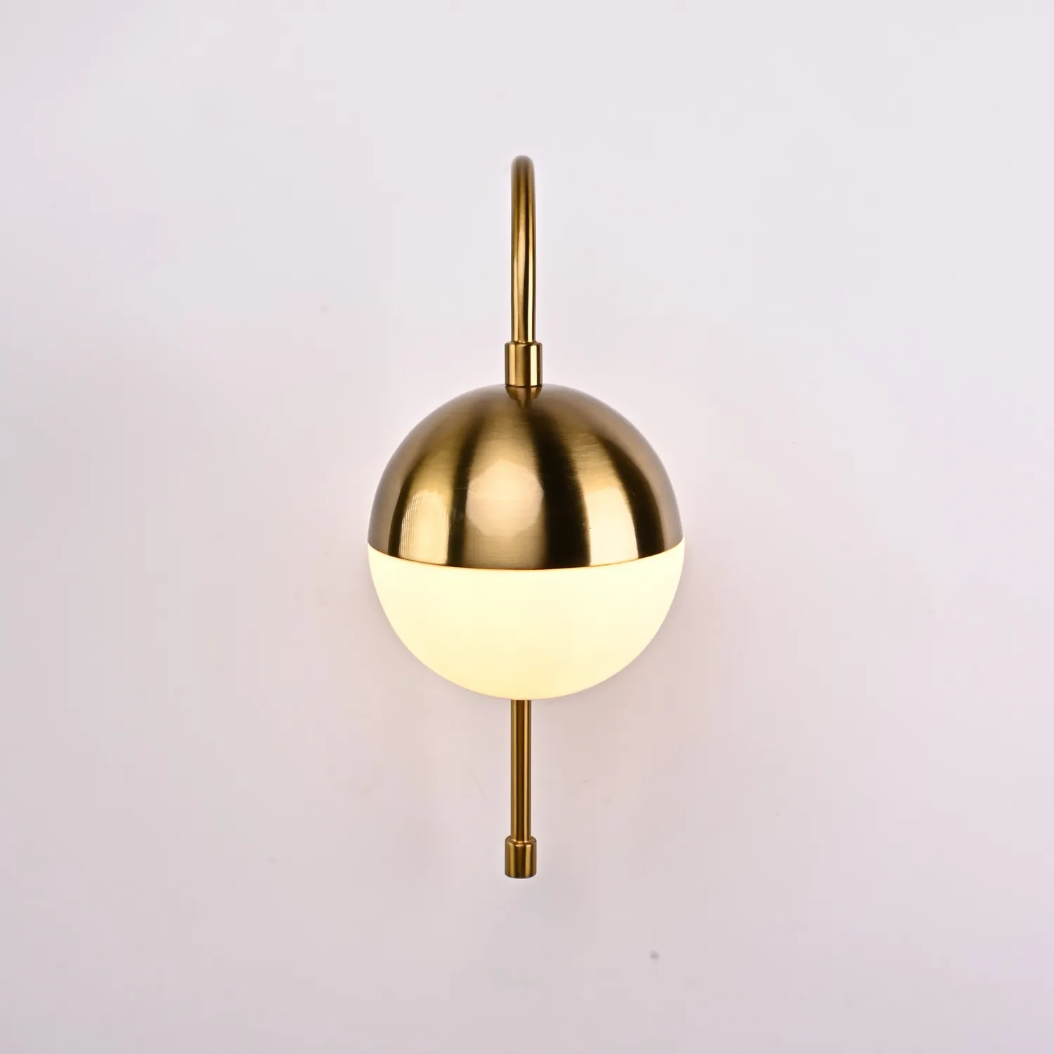 Серия трендовых светильников в минималистичном стиле со стеклянными шарообразными плафонами на каркасе латунного цвета. Универсальность и лаконичность позволит светильникам серии идеально вписаться в большой спектр интерьерных решений, а широкая палитра типовых и оригинальных конструкций гарантирует необходимую функциональность, решая за вас проблему подбора светильников в едином стиле. Настенное бра BALLWALL - это элегантное и стильное освещение, которое превратит вашу комнату в уютное и приятное место. Сочетание металлического каркаса с шарообразным стеклянным плафоном придает этому бра изысканный и современный вид. Оно идеально подходит для освещения гостиной, спальни или коридора. BALLWALL легко устанавливается на стену и создает мягкое и приятное освещение, добавляя шарм и стиль вашему интерьеру. Приобретите настенное бра BALLWALL и добавьте элегантности вашему дому!