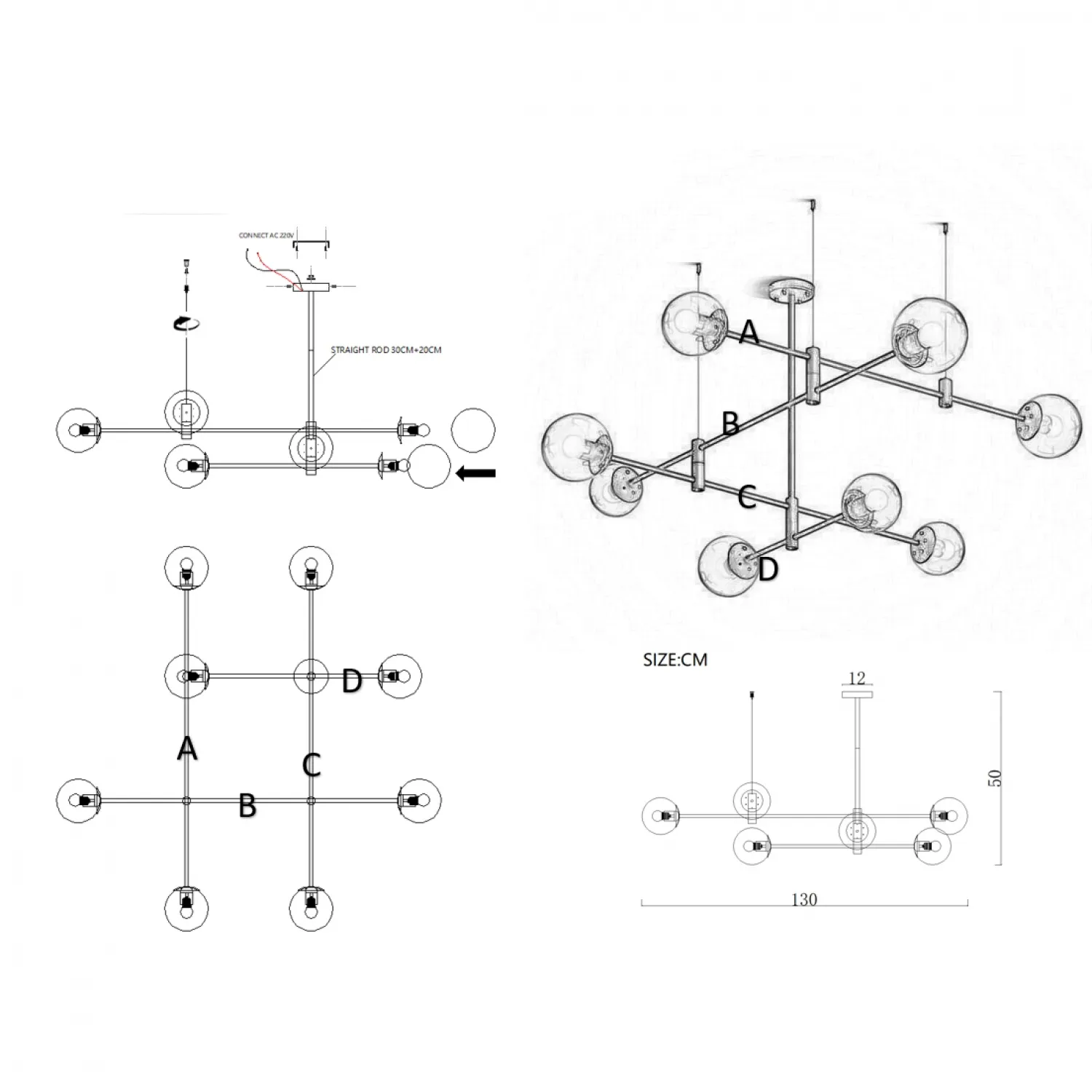 Люстра на штанге GAP золото