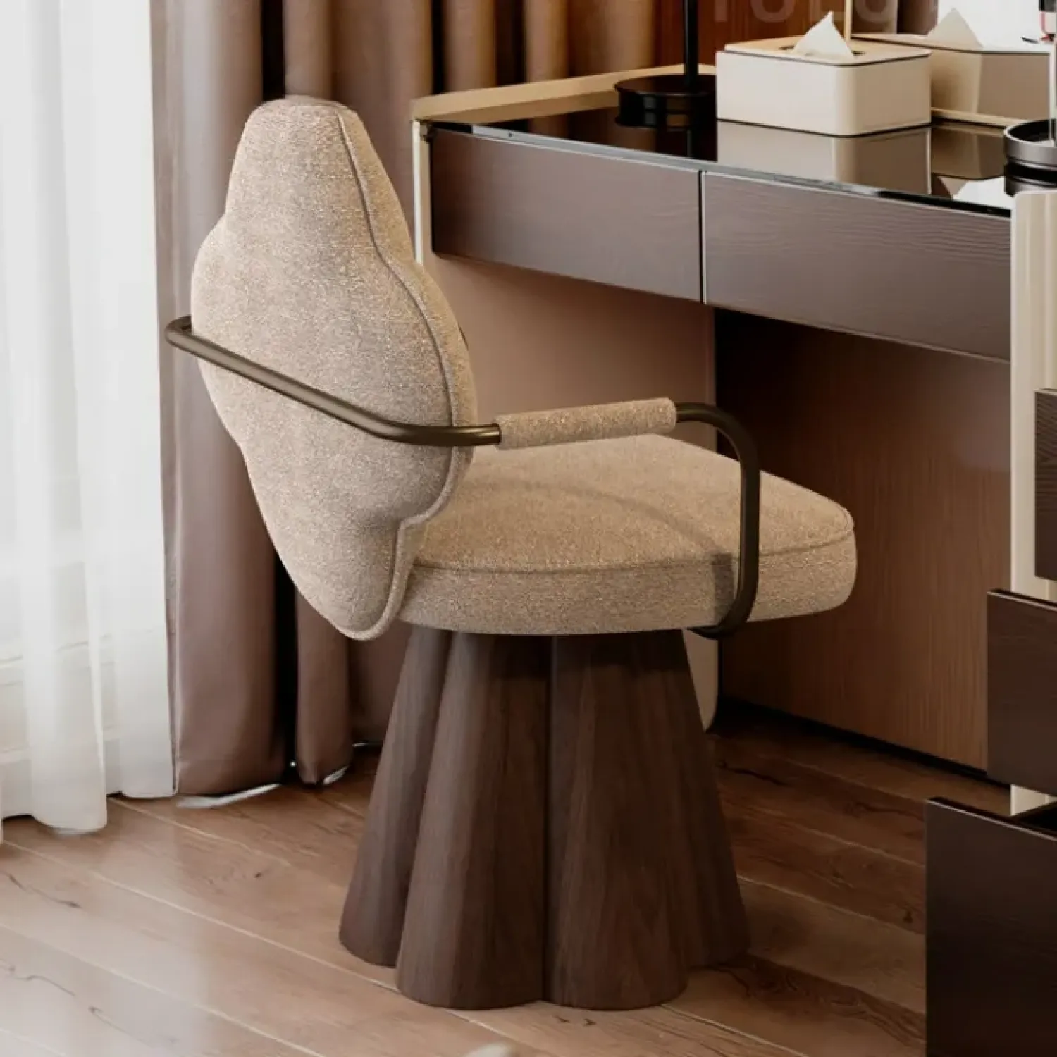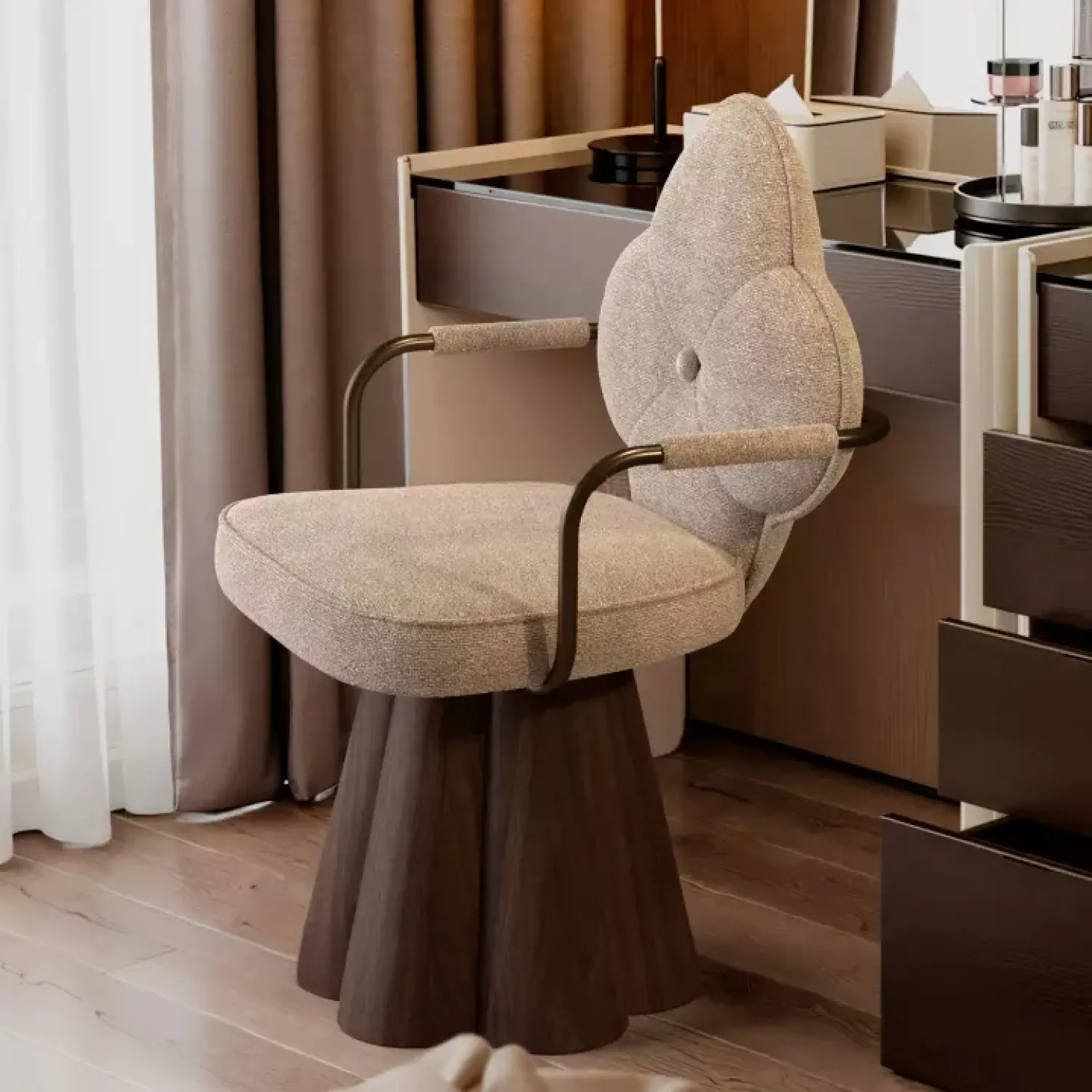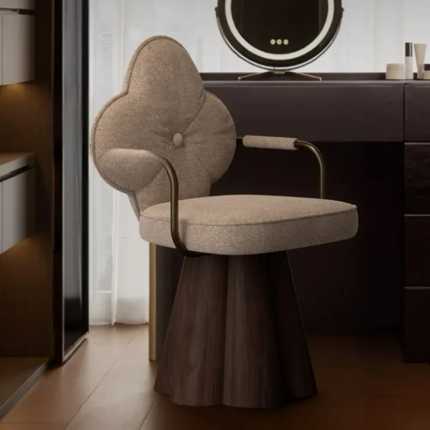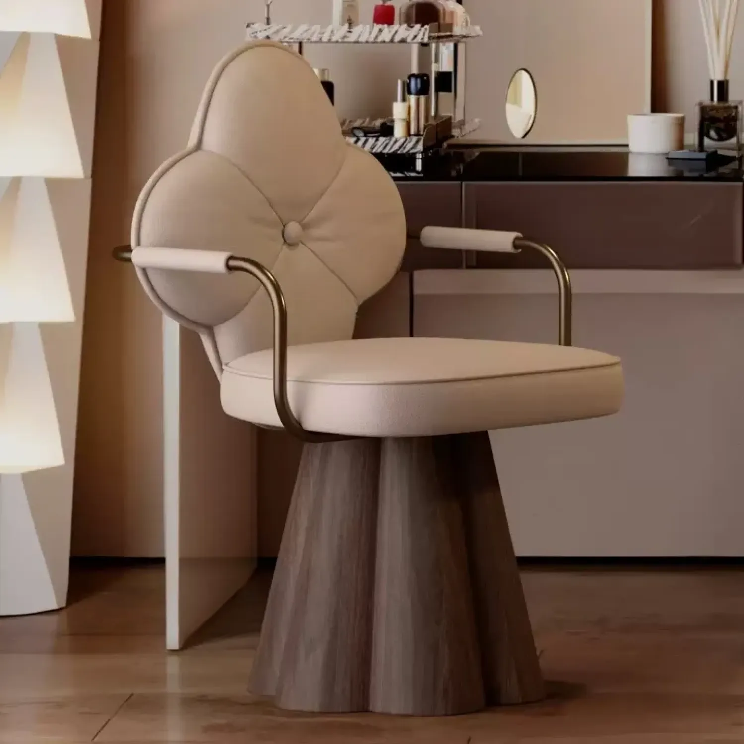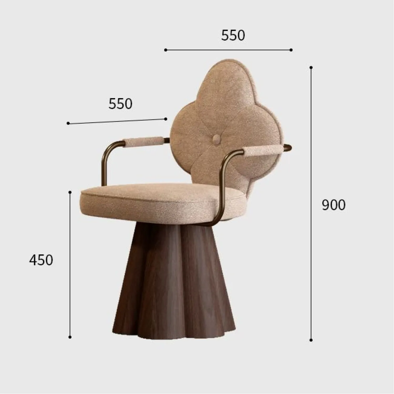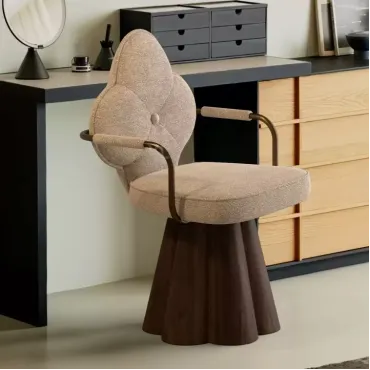 Дизайнерское кресло привлекает внимание необычной формой спинки в виде цветка. Прочное деревянное основание обеспечивает устойчивость, а мягкие подлокотники и сиденье дарят комфорт. Универсальный предмет интерьера, который украсит любой дом.