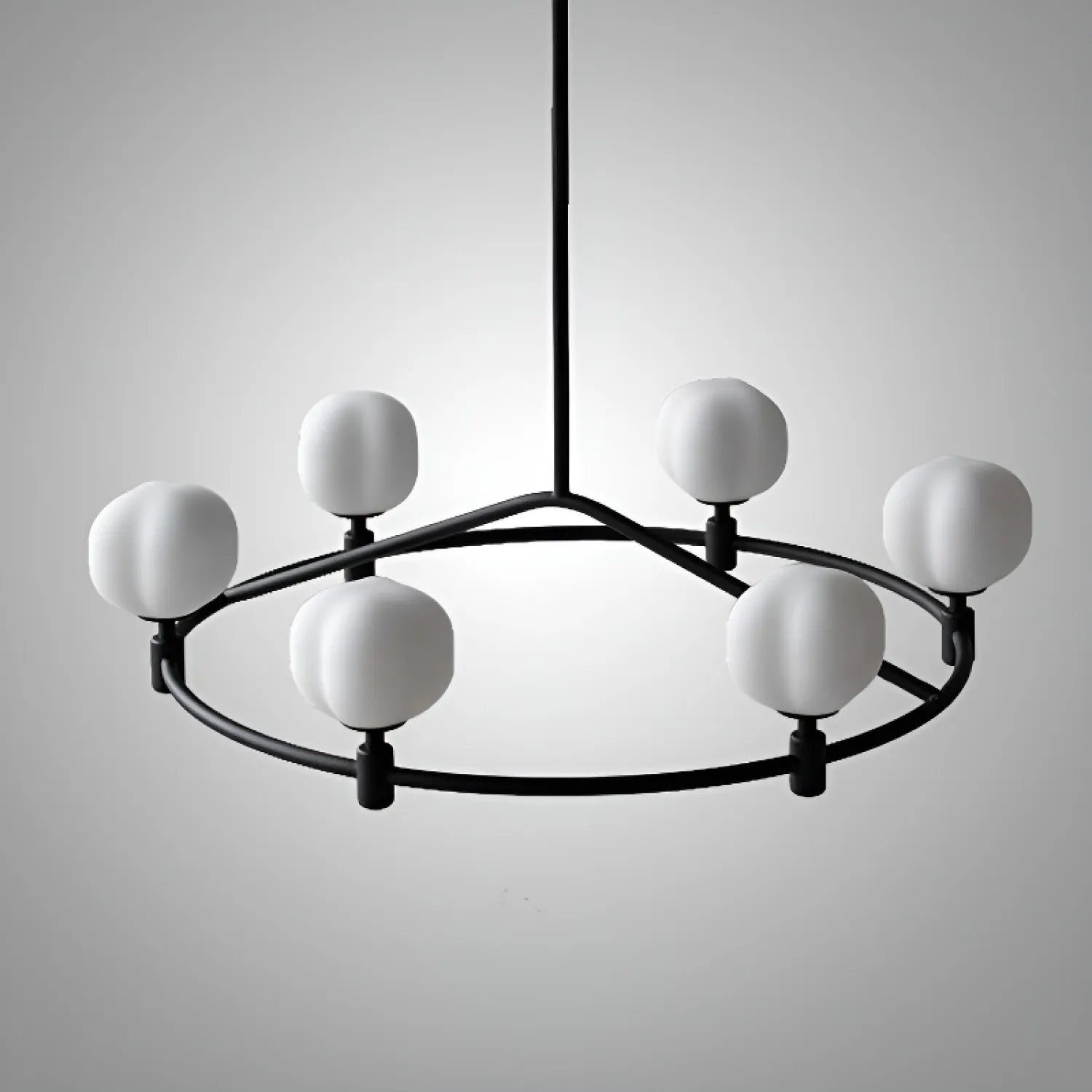 Элегантная люстра на штанге в скандинавском стиле станет изюминкой вашего интерьера. Конструкция с шестью матовыми стеклянными плафонами в форме коробочек хлопка на латунной перекладине создаёт мягкий, рассеянный свет. лаконичный дизайн гармонично впишется в кухню, столовую или гостиную, подчёркивая минимализм и утончённость пространства. Компактность и простота формы делают этот светильник практичным и стильным решением для любого дома.