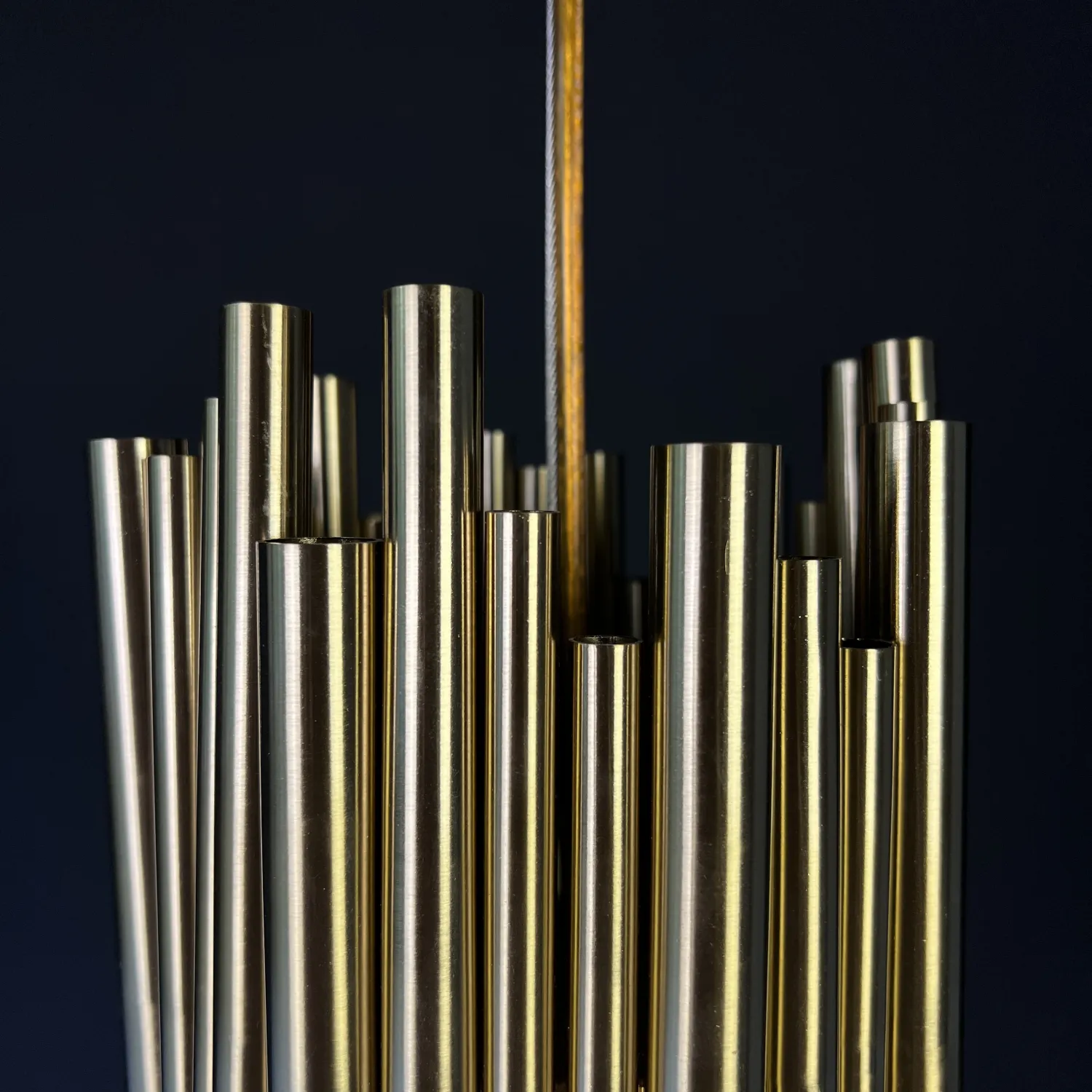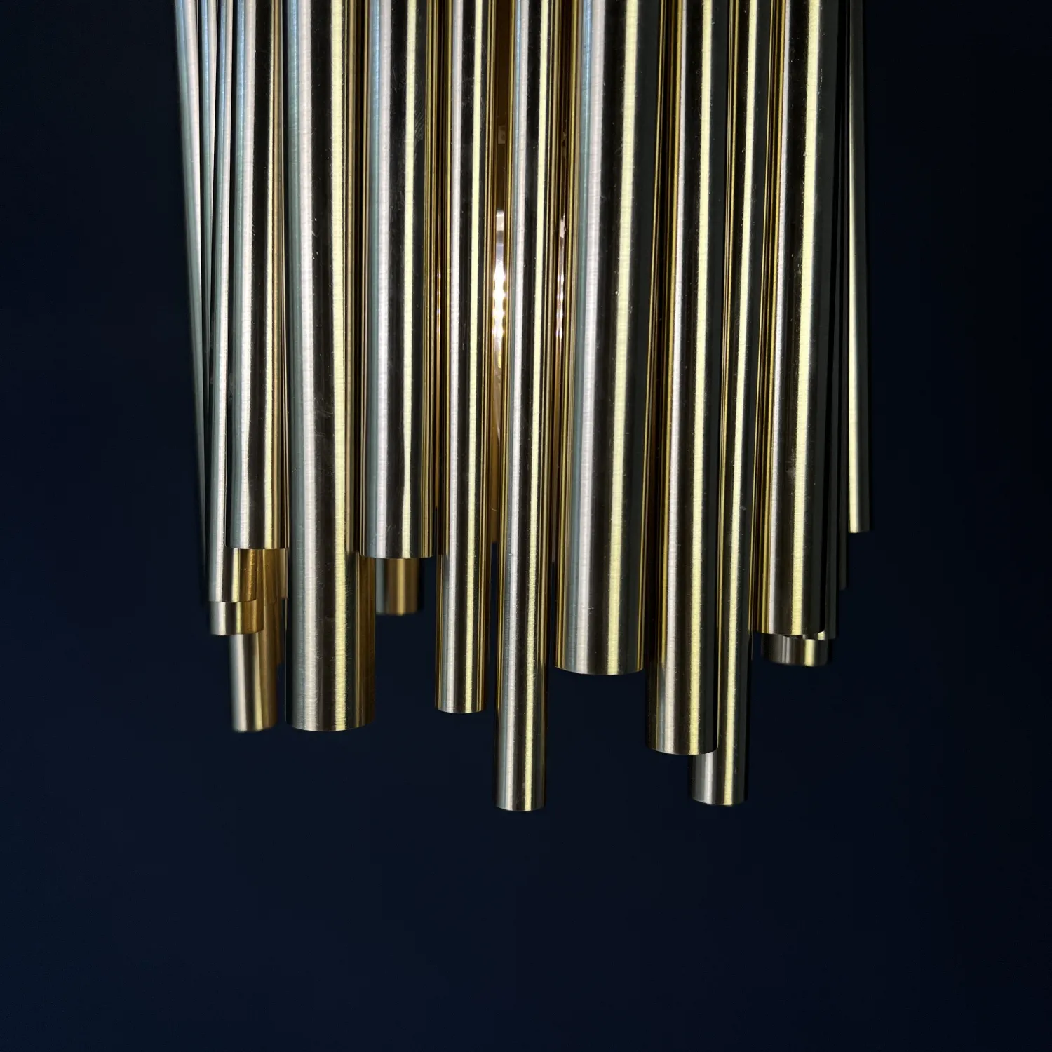 Эта люстра из серии Brubeck компании ImperiumLoft. Выглядит как несколько регистров музыкального инструмента органа, чего и добивались дизайнеры, придумавшие ее. Также, как и вся серия Brubeck, прообразом послужил орган. Похожа по размеру на бра Brubeck, с той лишь разницей, что подвешивается на потолок. Центром помещения она, в отличие от своих больших собратьев, не станет, но послужит яркой изюминкой.Представлены живые фото из нашего шоурума, а также видеообзор на данную модель можно посмотреть во вкладке "Видео".<div></div> Подвесной светильник Brubeck Delightfull 18 - это идеальное решение для тех, кто хочет добавить элегантности и стиля в свой интерьер. Этот потрясающий светильник имеет утонченный дизайн с металлическими элементами, которые создают уникальный и изысканный вид. Создайте уютную атмосферу в любом помещении с помощью этого потрясающего подвесного светильника. Его яркий свет и изысканный дизайн сделают вашу комнату стильной и уютной. Подвесной светильник Brubeck Delightfull 18 подойдет для любого интерьера, добавляя в него шарм и изысканность. Этот светильник не только красив, но и функционален. Он освещает пространство равномерно и ярко, создавая уютную атмосферу. Благодаря своему стильному дизайну, он станет настоящим украшением вашего интерьера. Не упустите возможность приобрести подвесной светильник Brubeck Delightfull 18 и добавить неповторимый шарм в свой дом!