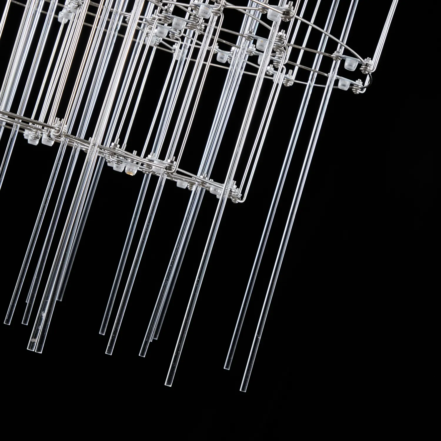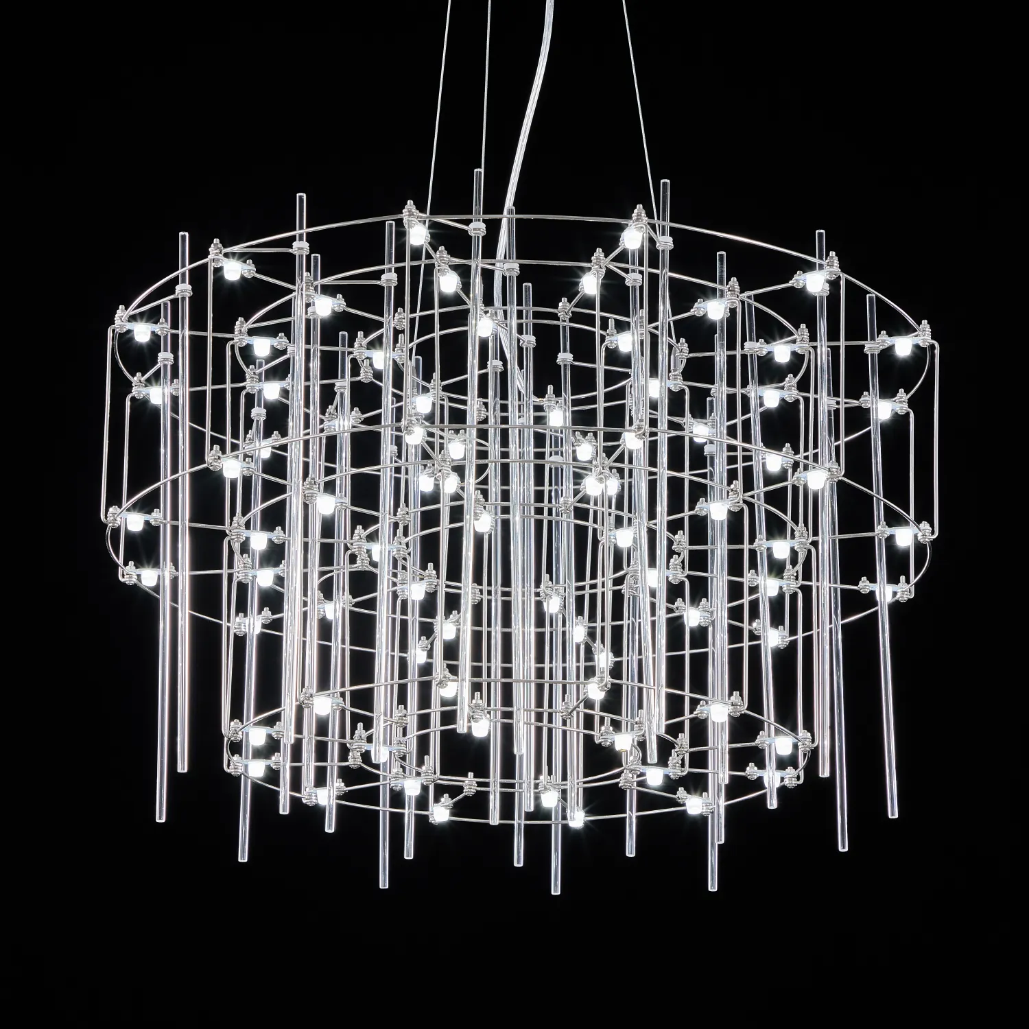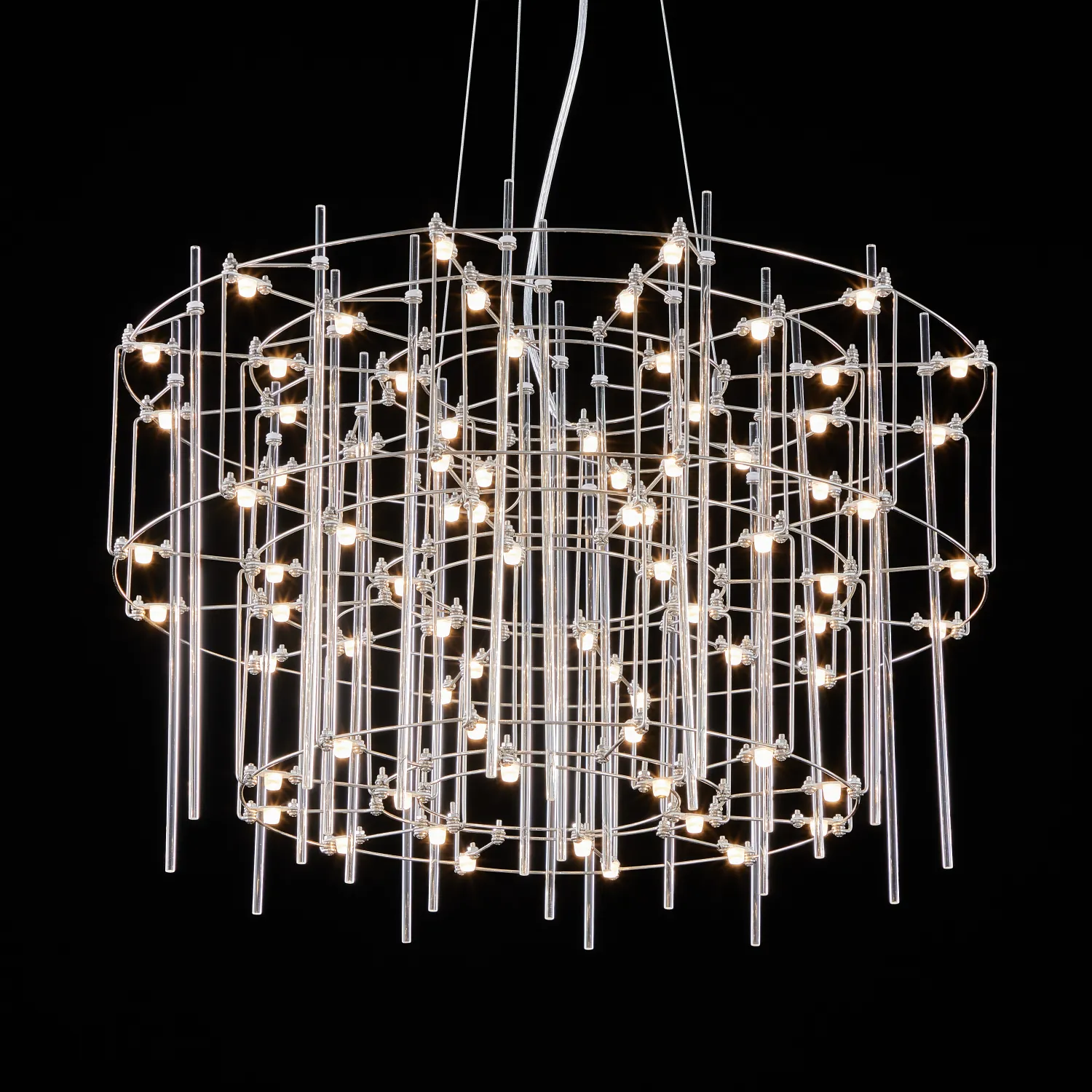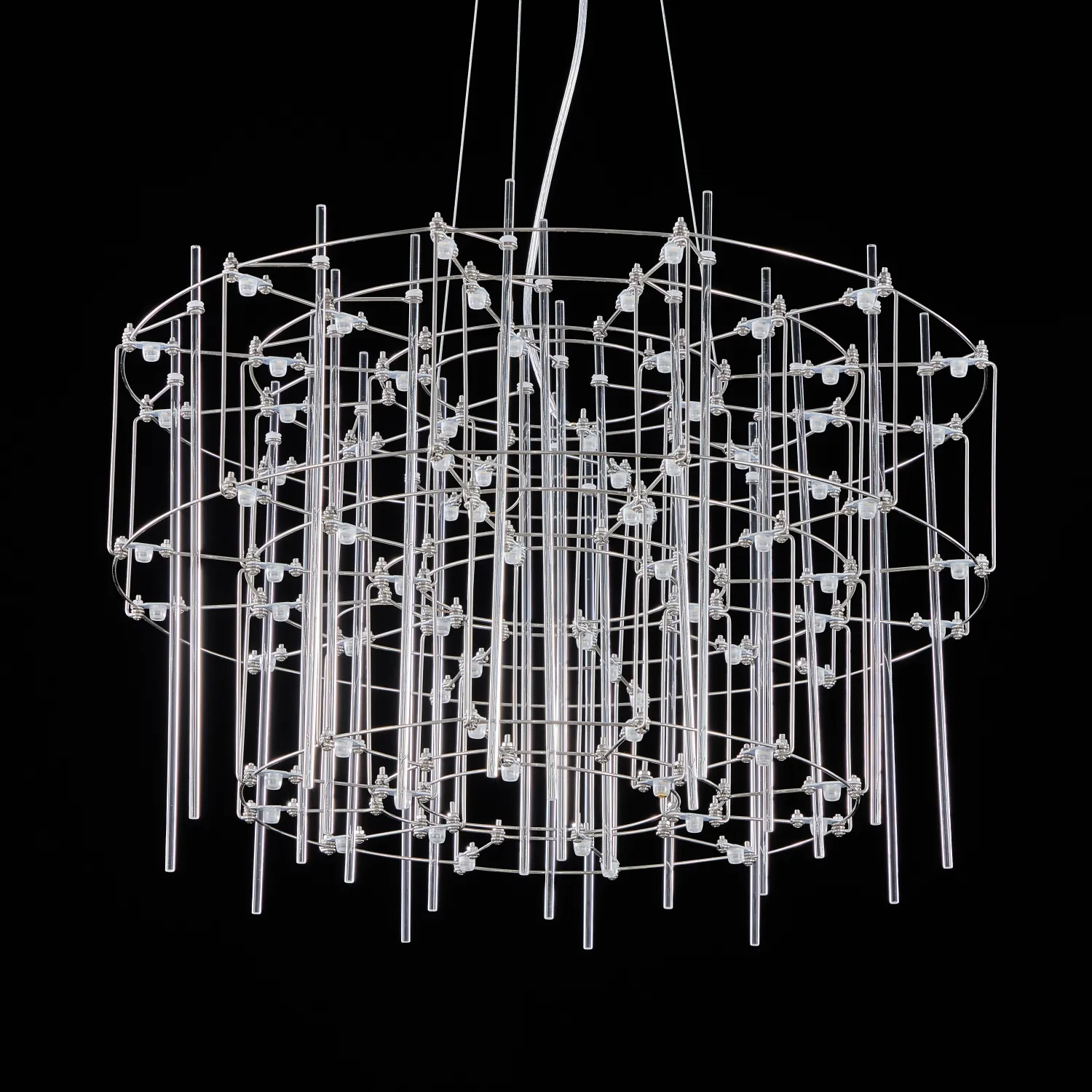 Люстра с точечными светодиодными источниками на серебристом каркасе с декором из стеклянных стержней CHILL A