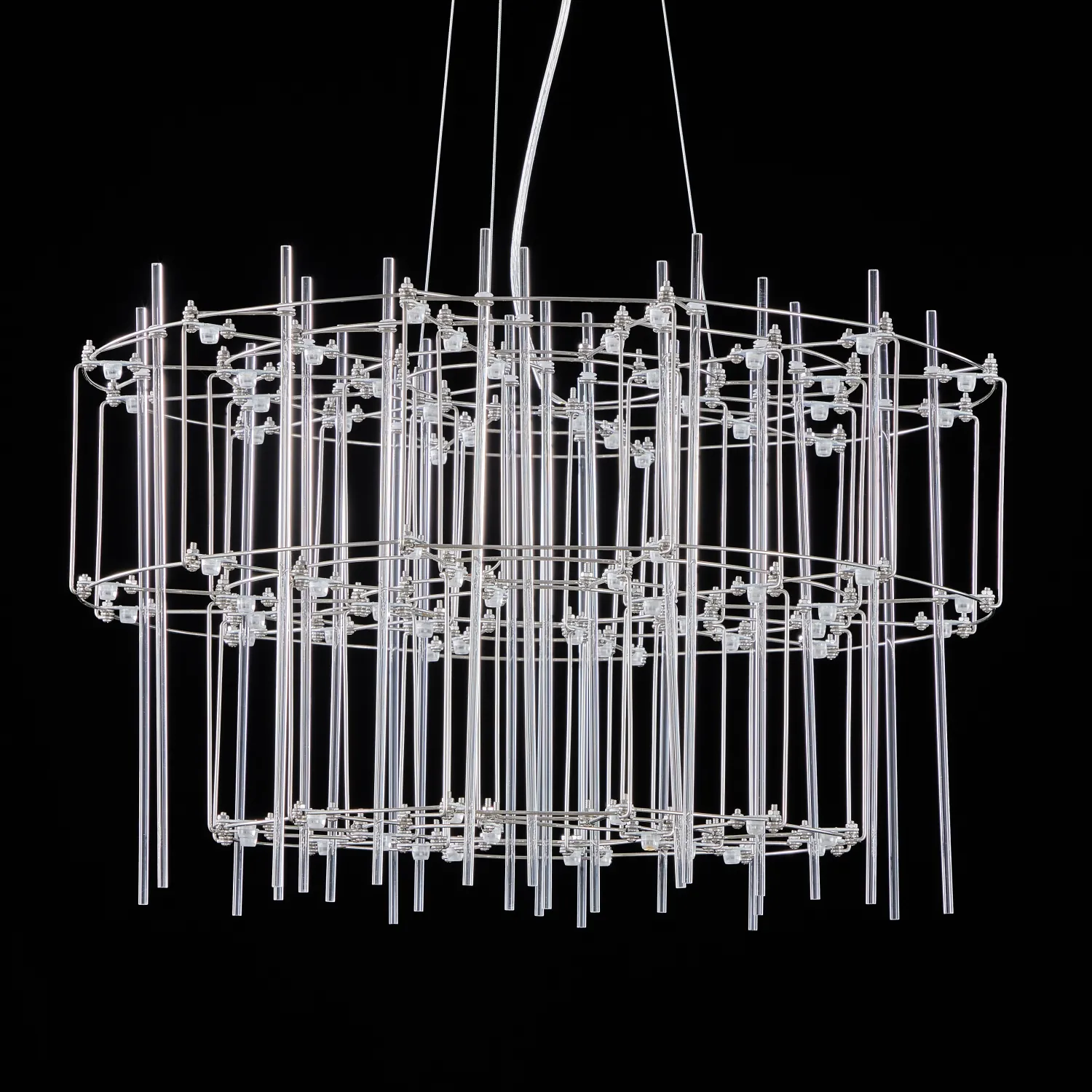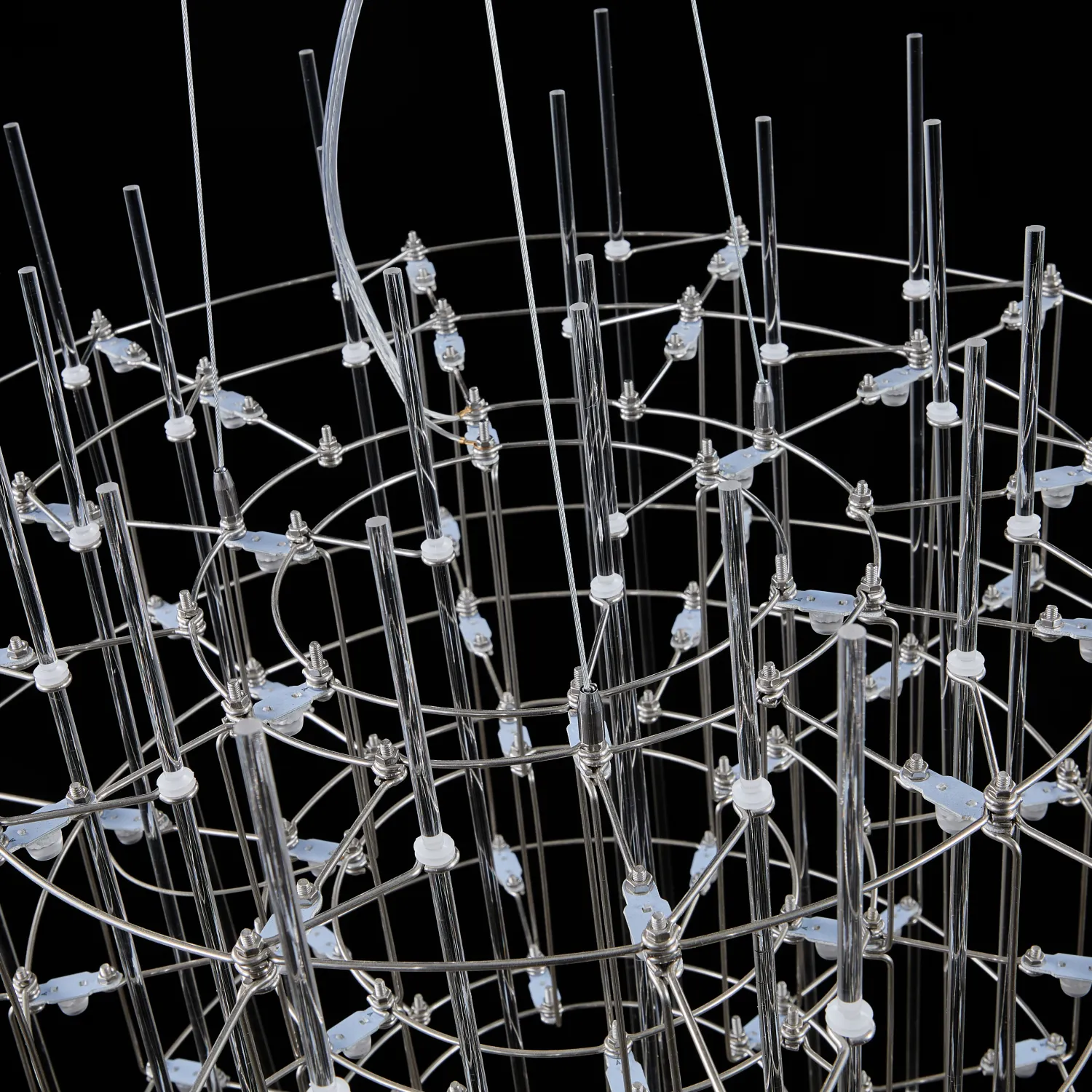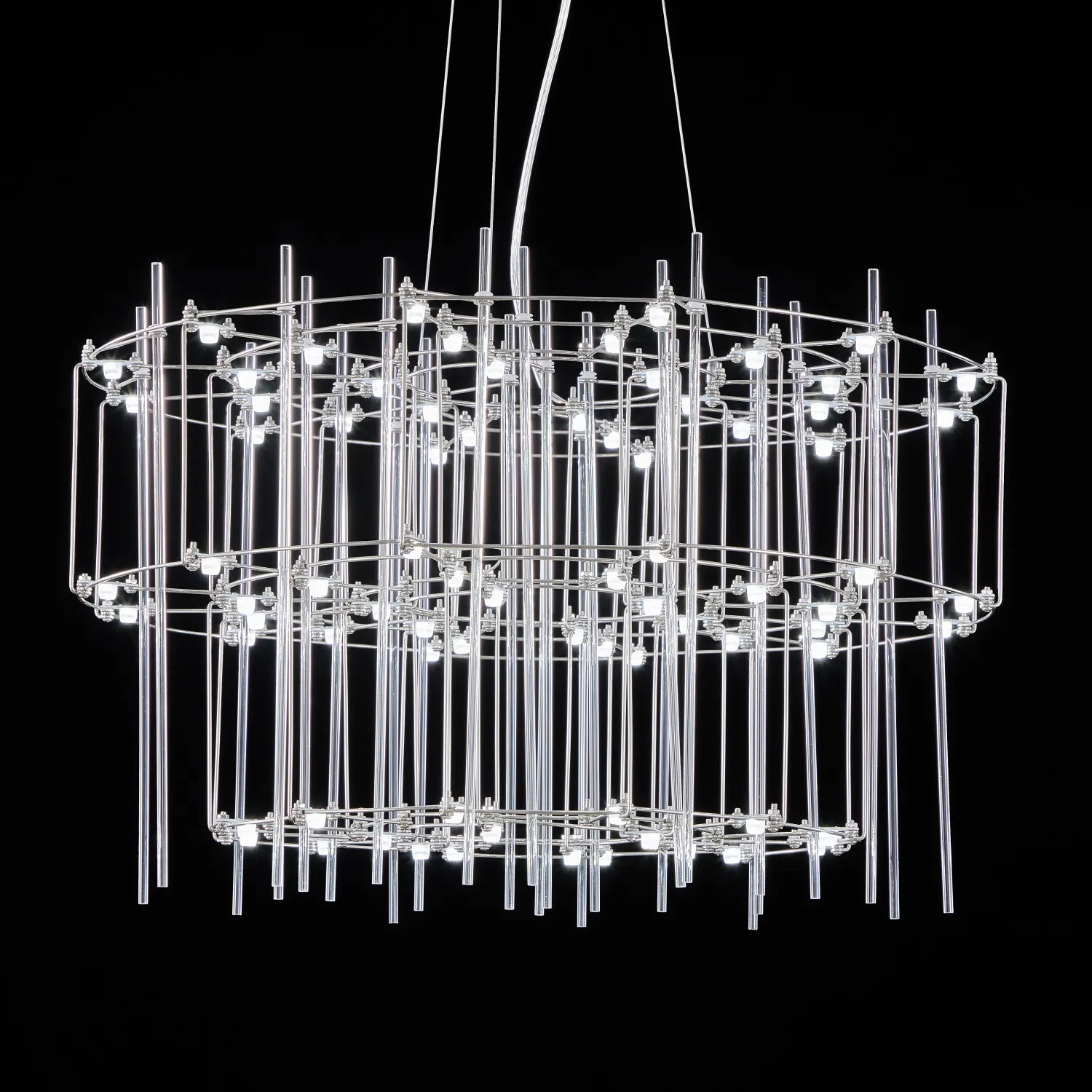 Люстра с точечными светодиодными источниками на серебристом каркасе с декором из стеклянных стержней CHILL A