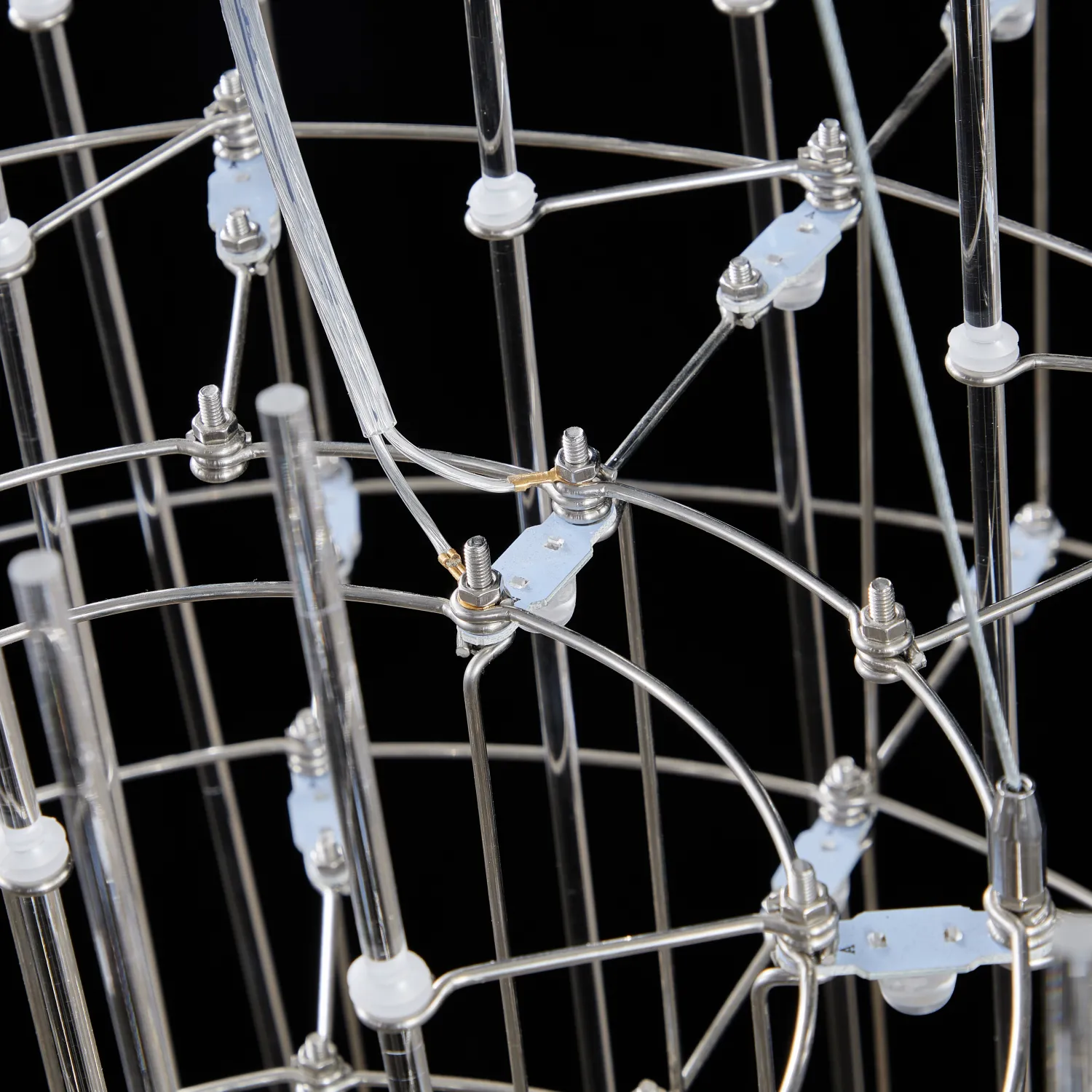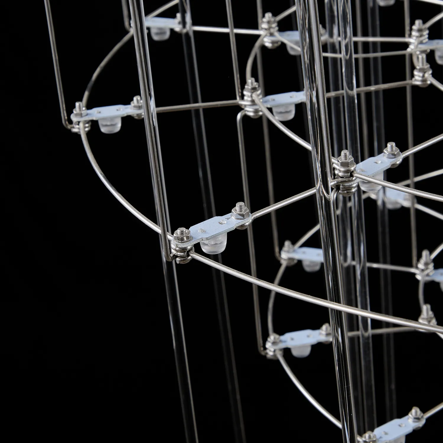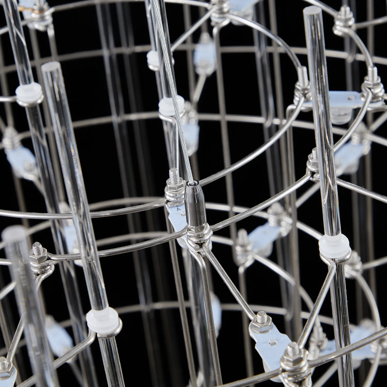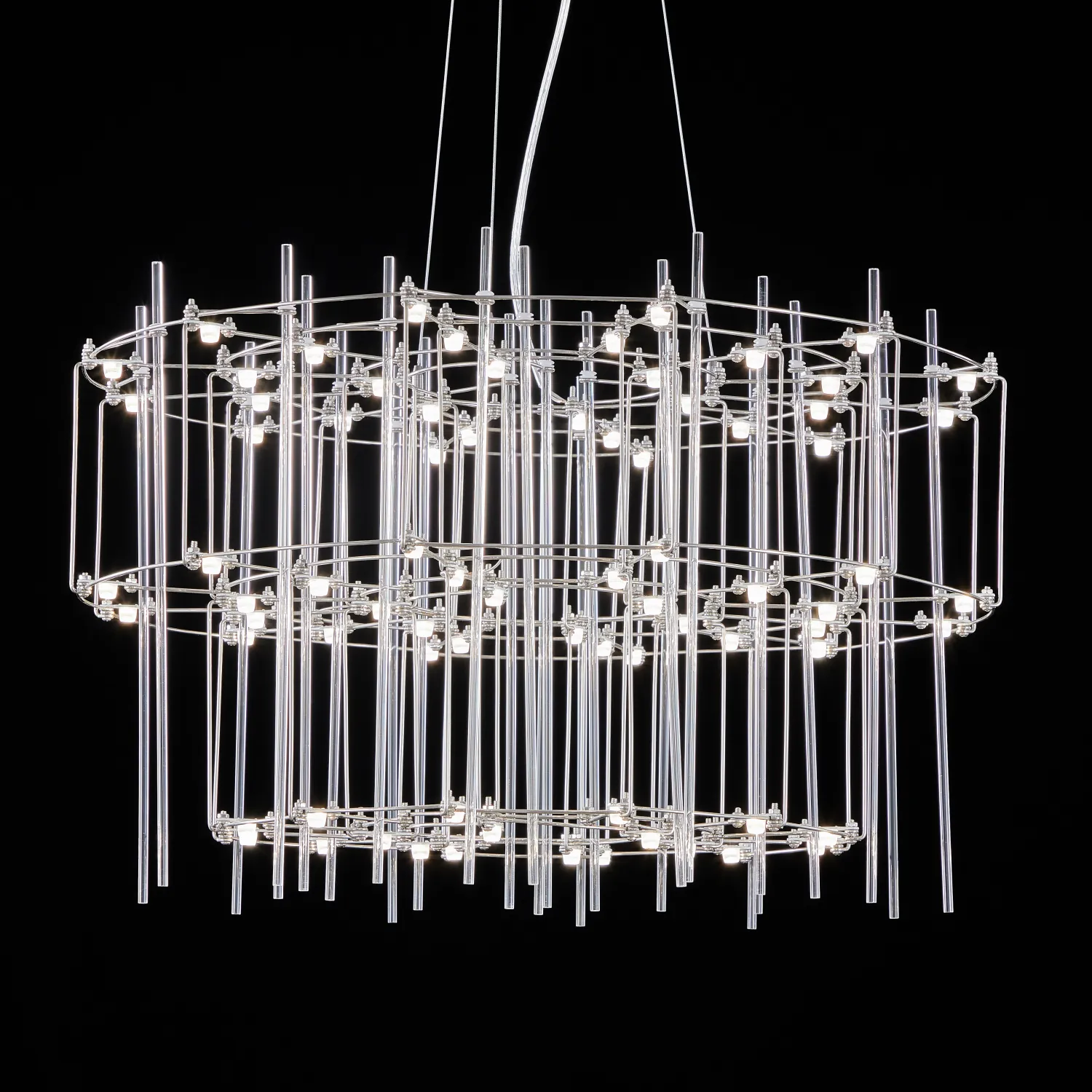 Люстра с точечными светодиодными источниками на серебристом каркасе с декором из стеклянных стержней CHILL A