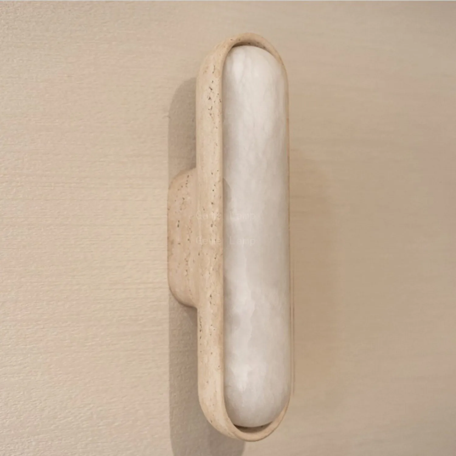 Изысканный настенный светильник воплощает в себе природную элегантность травертина и мрамора, создавая неповторимую игру света и тени на стенах. Благородные материалы в сочетании с современным дизайном формируют утончённый силуэт, который станет выразительным акцентом в любом интерьере. Тёплый, слегка желтоватый свет мягко рассеивается через естественные текстуры камня, создавая уютную и расслабляющую атмосферу. Универсальная конструкция позволяет регулировать направление света, что делает светильник практичным решением для ванной комнаты, спальни или прихожей.