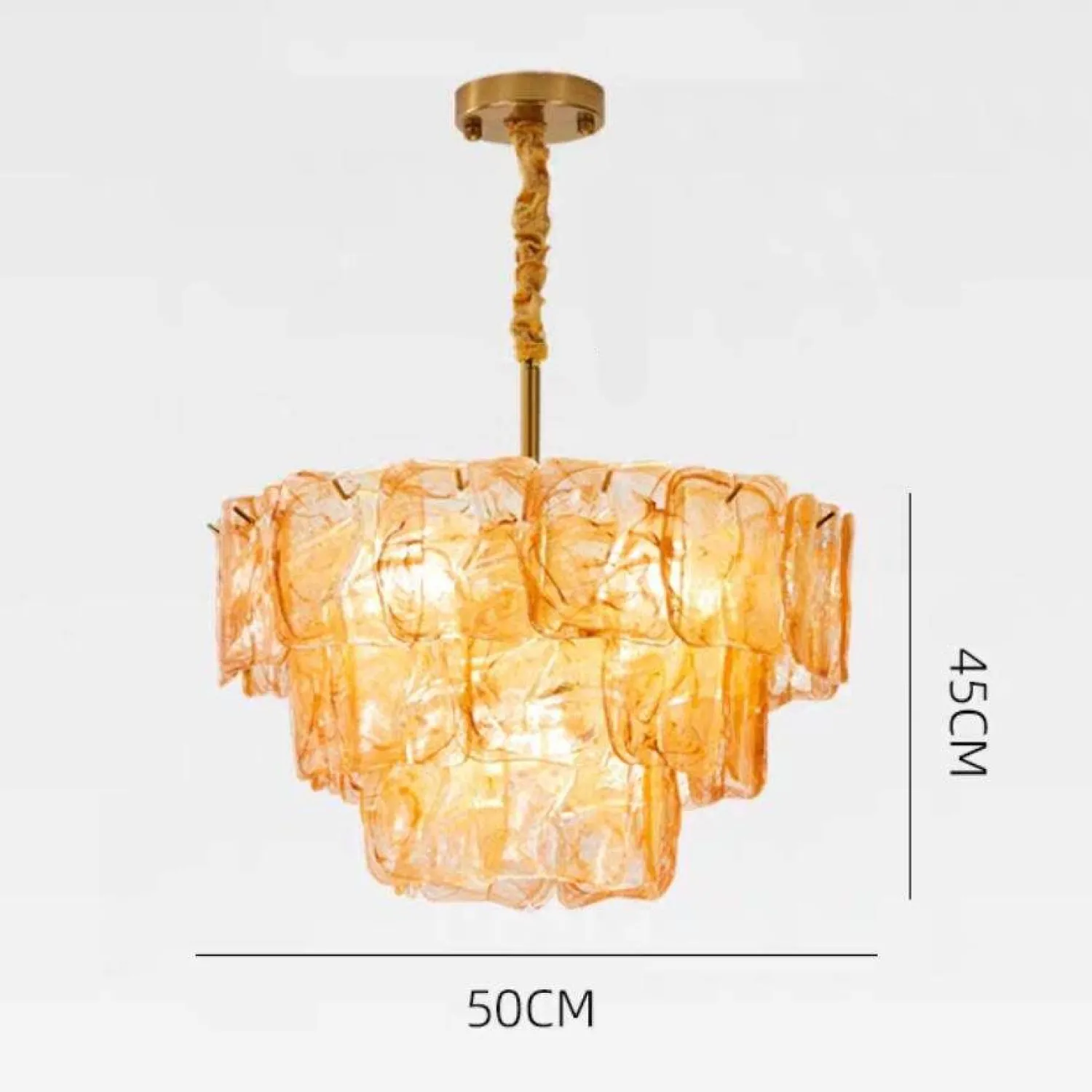 Винтажная люстра из стекла поражает изысканностью и оригинальностью дизайна. Многоярусная конструкция собрана из полупрозрачных стеклянных элементов с выразительными, напоминающими мраморные разводы. Золотистая цепь и крепёж добавляют изделию нотку классического шарма. Люстра станет эффектным акцентом в гостиной или столовой, наполняя пространство мягким, рассеянным светом.
