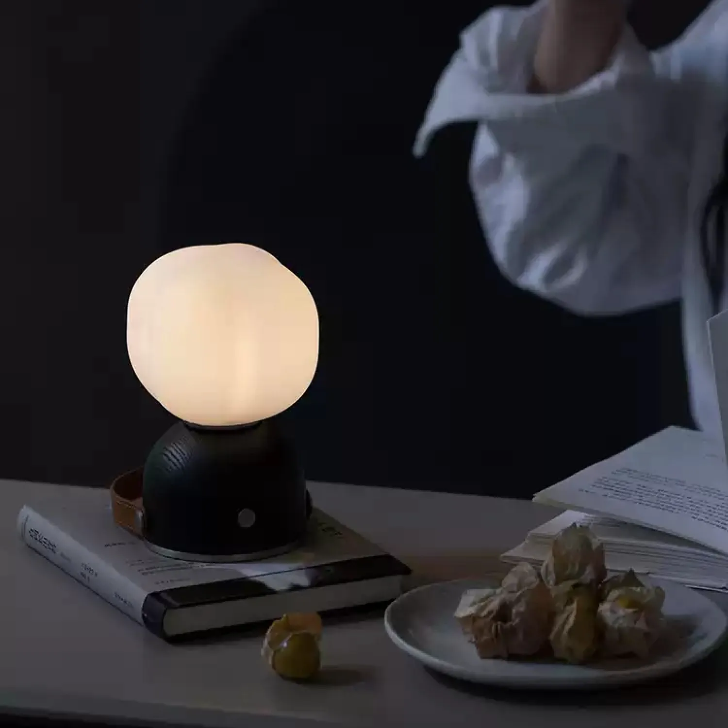 Настольная лампа станет изюминкой вашего интерьера. Конструкция с матовым стеклянным плафоном в форме коробочек хлопка на деревянном основании, рассеянный свет. лаконичный дизайн гармонично впишется в кухню, столовую или гостиную, подчёркивая минимализм и утончённость пространства. Компактность и простота формы делают этот светильник практичным и стильным решением для любого дома. Кожаный ремешок позволяет повесить лампу в любом месте.