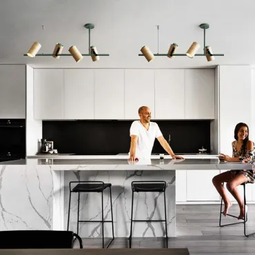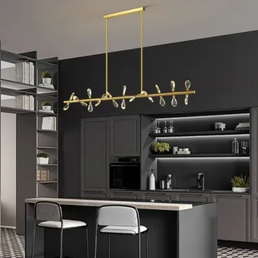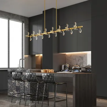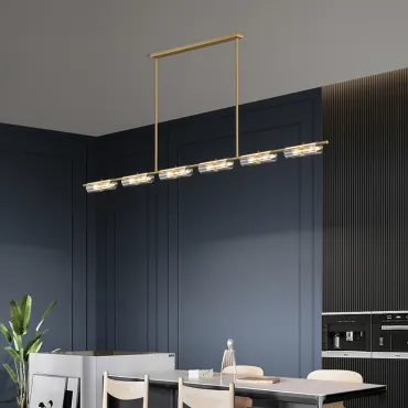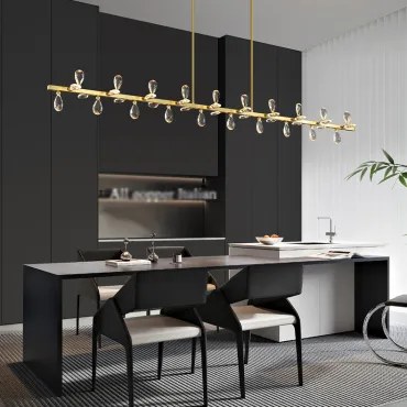 Дизайнерские светильники и люстры с реечным или рядным устройством преобразят любой интерьер. Они выгодно оттенят высоту потолков и позволят подсветить отдельную зону в комнате, например, обеденный стол или рабочее место в кабинете. Это функциональное решение поможет равномерно осветить пространство там, где требуется разместить несколько светильников на одном потолочном креплении.