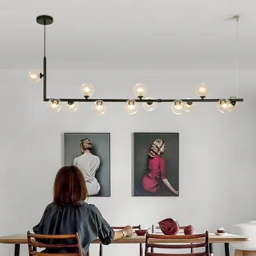 Дизайнерские светильники и люстры с реечным или рядным устройством преобразят любой интерьер. Они выгодно оттенят высоту потолков и позволят подсветить отдельную зону в комнате, например, обеденный стол или рабочее место в кабинете. Это функциональное решение поможет равномерно осветить пространство там, где требуется разместить несколько светильников на одном потолочном креплении.