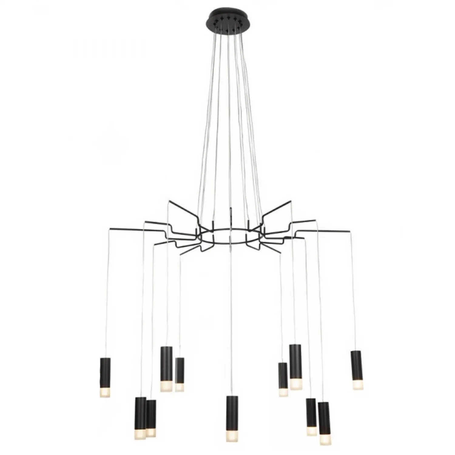 Via WIREFLOW CHANDELIER . Серия неординарных геометрических светильников Wireflow, созданная французским дизайнером Арик Леви для Via, сочетает в себе черные провода и металлические каркасы на них. Хотите добавить стильный и современный акцент в своем интерьере? Тогда Wireflow LED Black Suspension lam 12 патронов - идеальный выбор для вас! Эта потрясающая подвесная лампа сочетает в себе элегантный дизайн с высококачественной функциональностью. Светодиодные лампы обеспечивают яркое и энергосберегающее освещение, а черный металлический каркас придает ей современный и изысканный вид. Эта лампа идеально подходит для любого помещения - от кухни до гостиной. Придайте своему дому изысканный шарм с Wireflow LED Black Suspension lam 12 патронов!