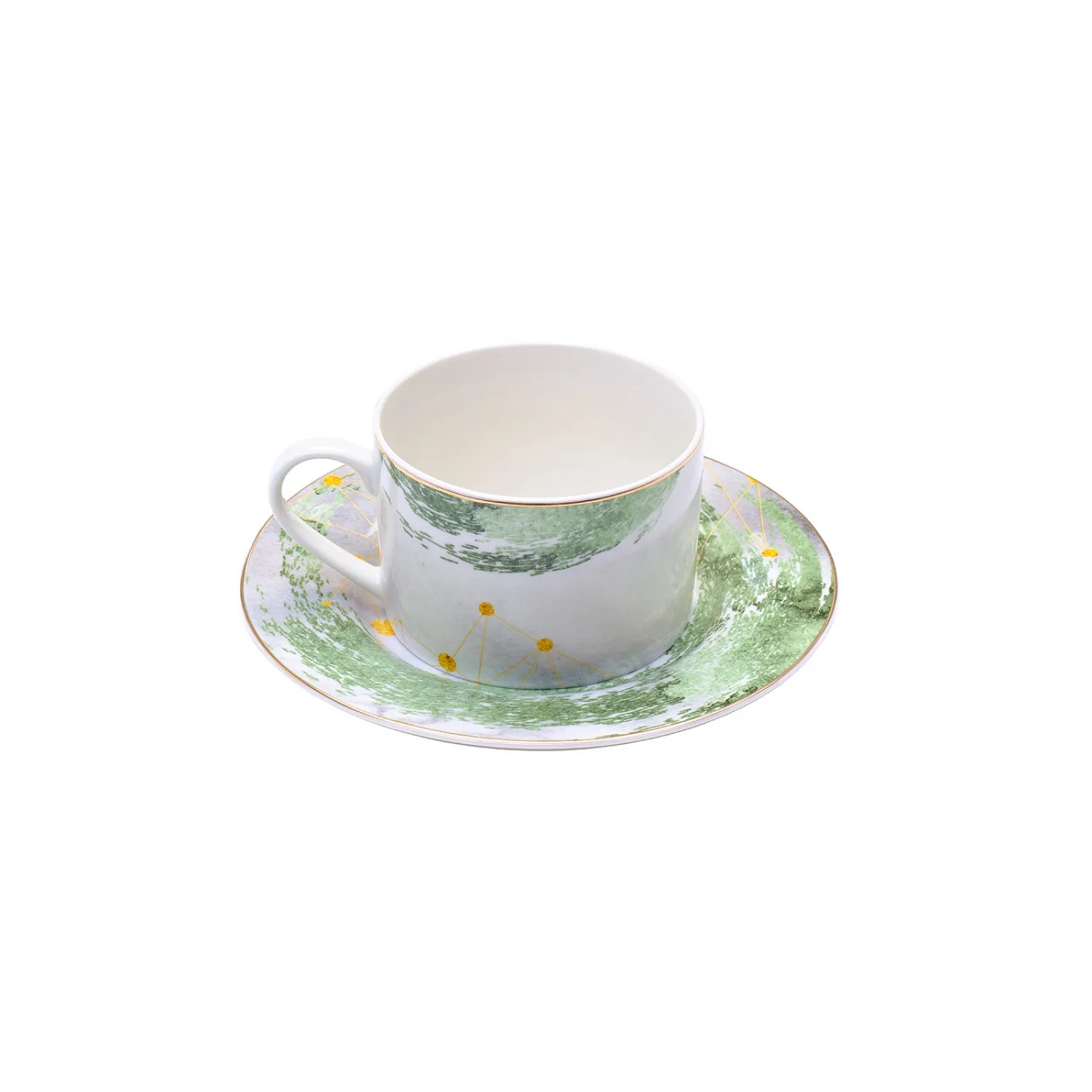Эта чайная пара выполнена из высококачественного фарфора, что делает ее прочной и долговечной. Благодаря своему элегантному дизайну и стильной форме, она станет настоящим украшением вашего чайного стола.