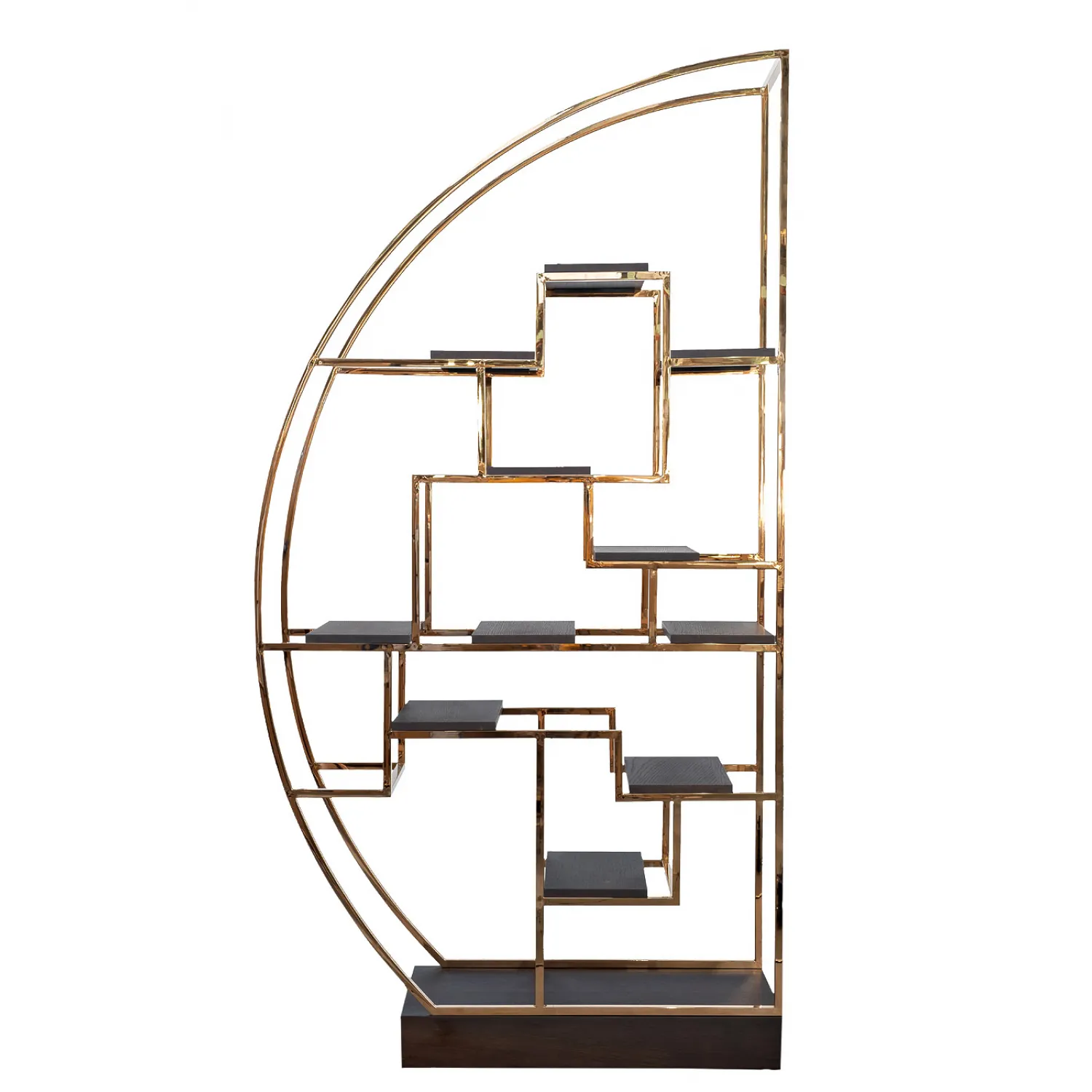 Этот стеллаж-полусфера розовое золото/темный шпон - это не только функциональный предмет мебели, но и настоящий объект искусства. Он станет великолепным дополнением к вашему интерьеру и привнесет в него нотку изысканности и стиля.