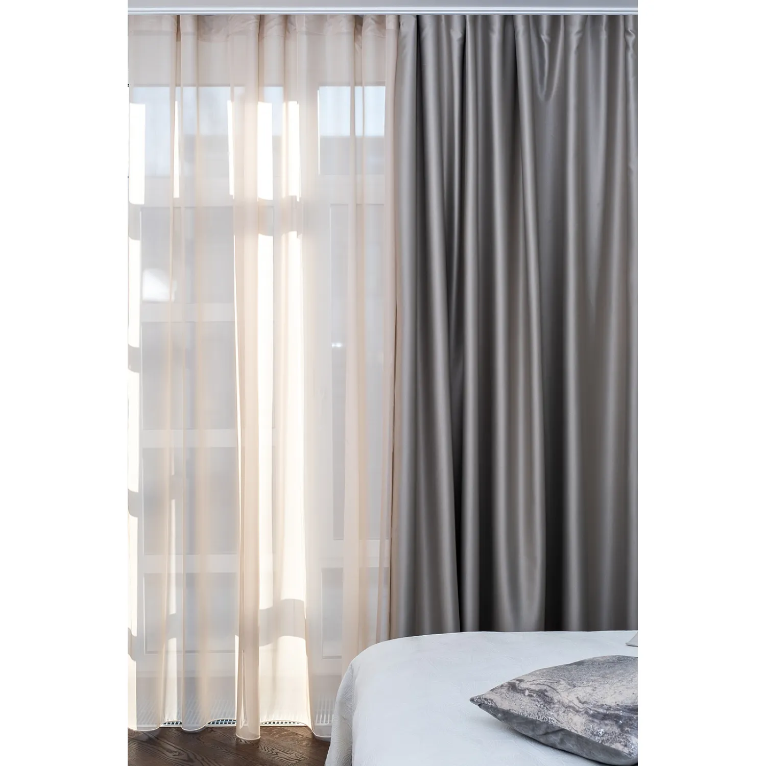 Сочетание высококачественного материала и современного дизайна делает эту портьеру не только стильным элементом интерьера, но и надежной защитой от нежелательного проникновения света и шума.