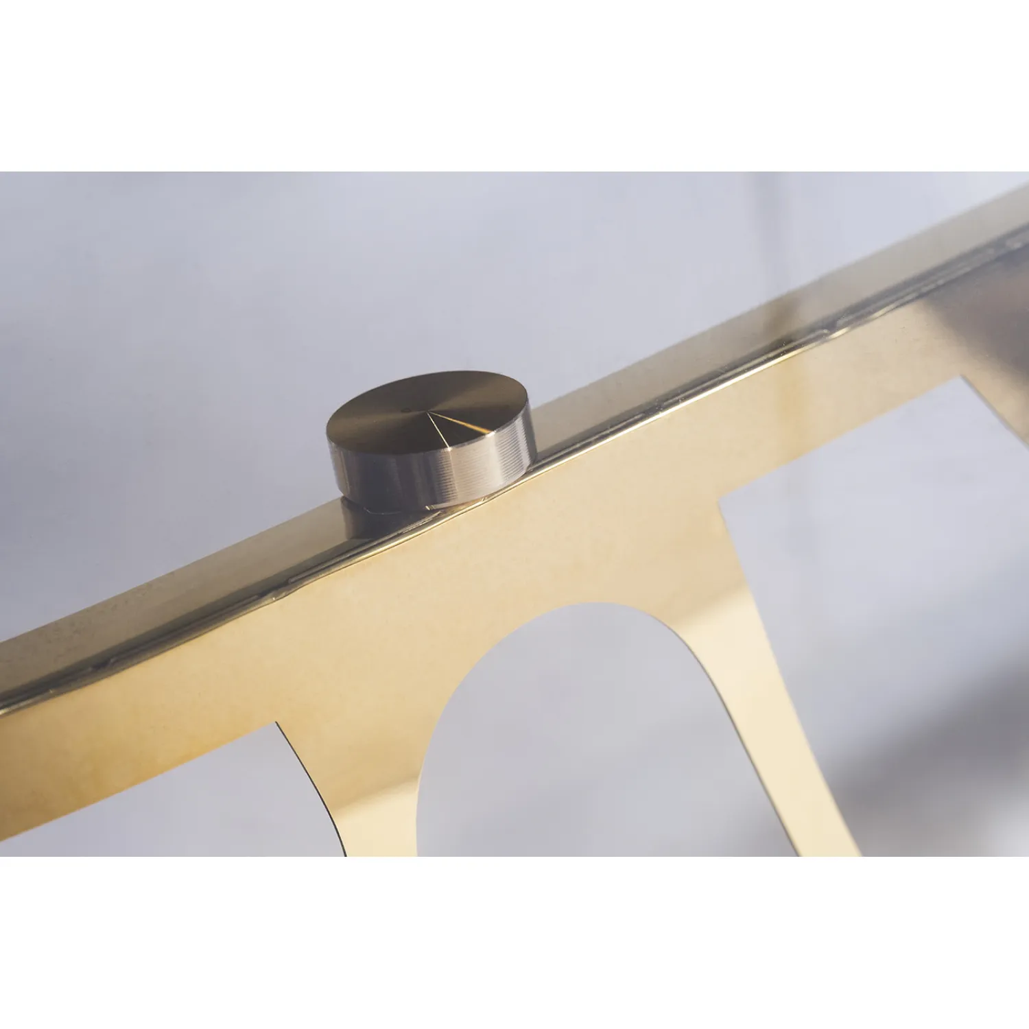 Изготовленный из прозрачного стекла высокого качества, этот стол обладает прочной и прочной конструкцией, которая гарантирует его долговечность и надежность. Золотистый металлический каркас добавляет роскоши и шарма, делая этот стол идеальным дополнением к современным и классическим дизайнам.
