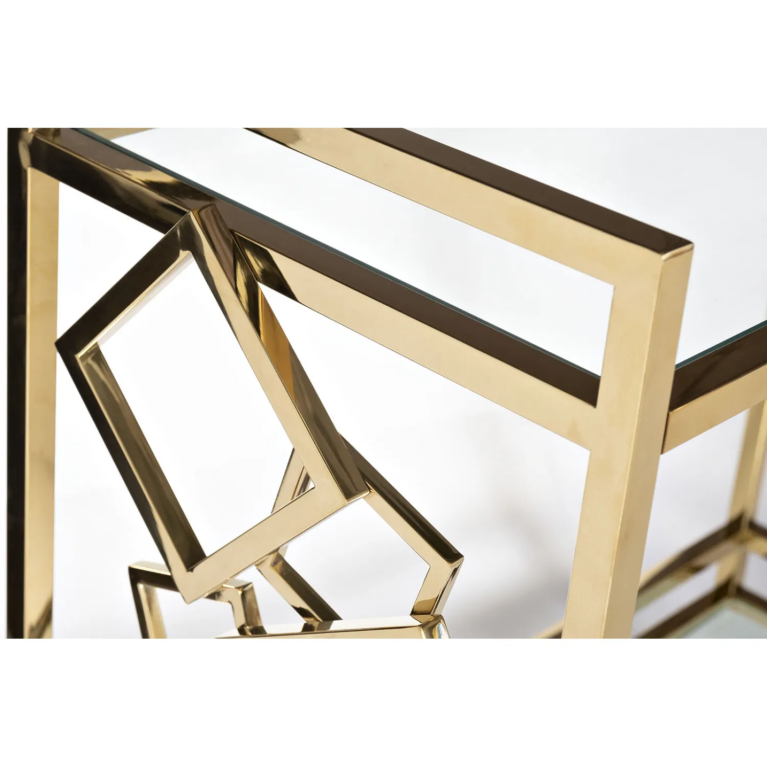 Сочетание стального каркаса и прозрачного стекла создает изысканный и современный дизайн, который гармонично впишется в любой интерьер. Золотистые элементы добавляют нотку роскоши и изысканности.