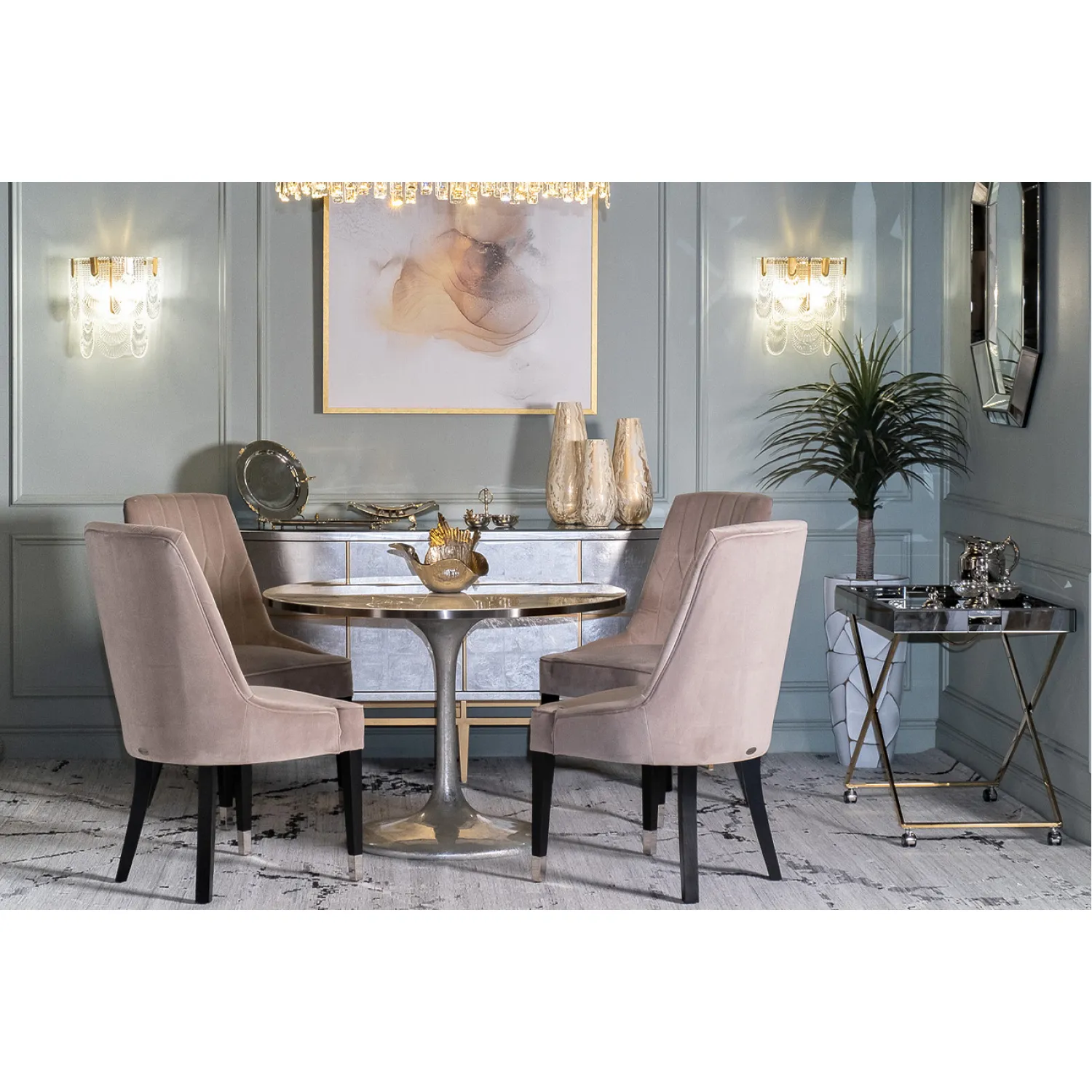 Стол сервировочный зеркальный матовый/золото - это не только функциональный предмет мебели, но и настоящее произведение искусства, которое добавит шарма и роскоши в ваш дом. Позвольте себе насладиться роскошью и элегантностью с этим уникальным столом.