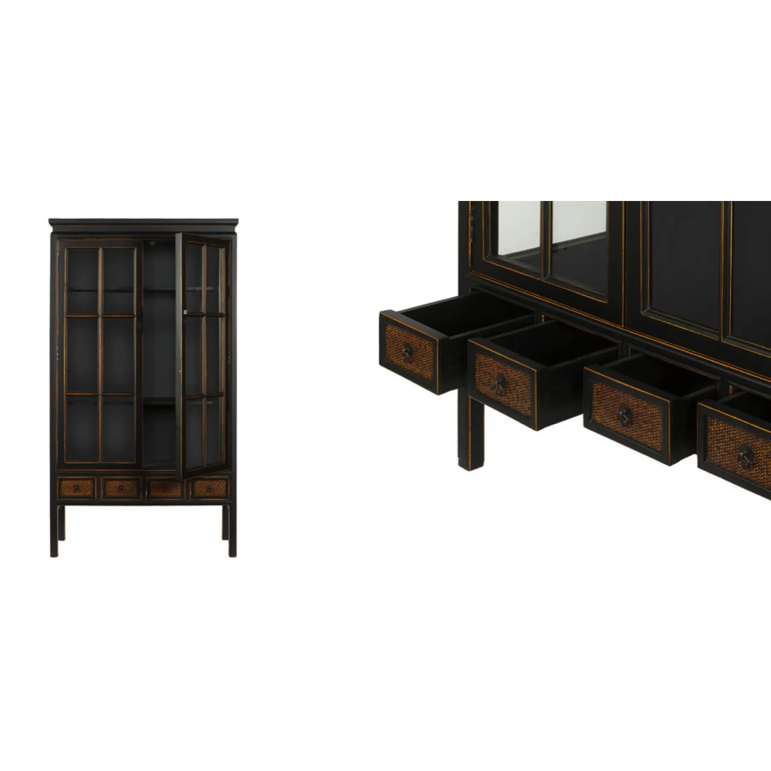 Его уникальный дизайн в стиле китайской мебели делает его привлекательным и уникальным элементом декора. Благодаря прозрачным стеклянным дверцам, вы сможете показать свои коллекции, фарфор, книги или другие ценные предметы, сохраняя их от пыли и повреждений.