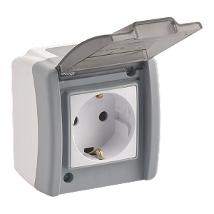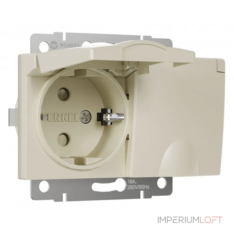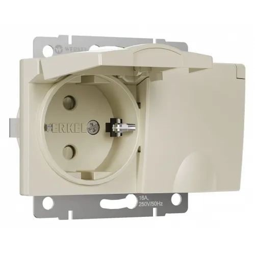 Розетка влагозащищенная с заземлением и шторками, без рамки с крышкой Werkel слоновая кость W1172203