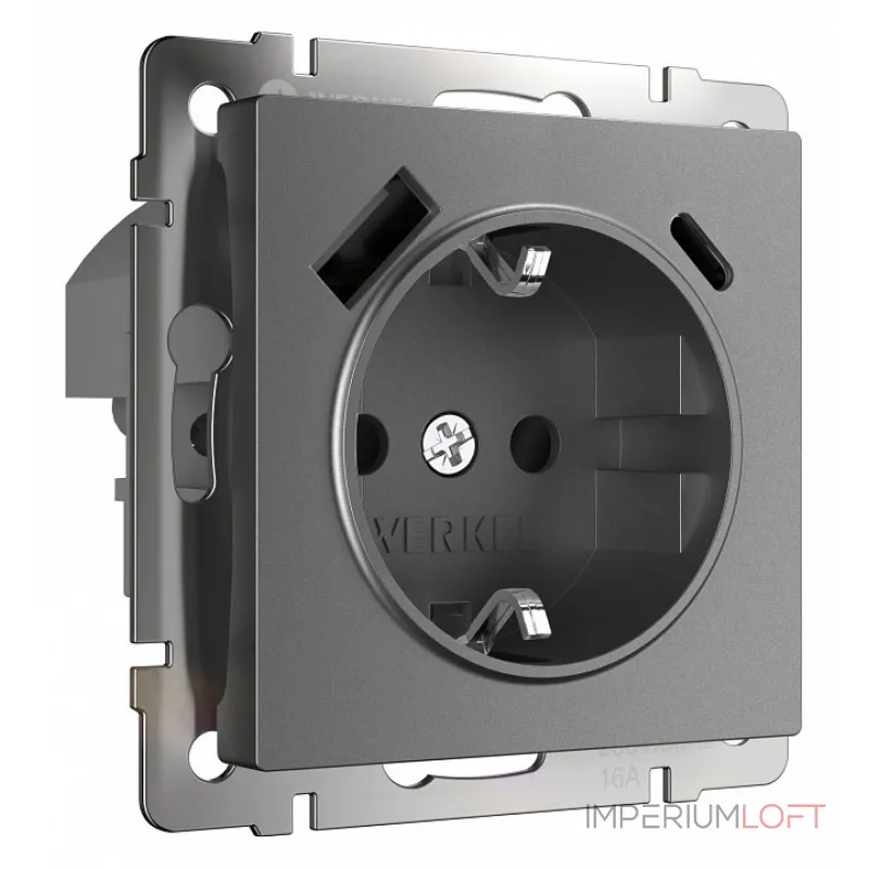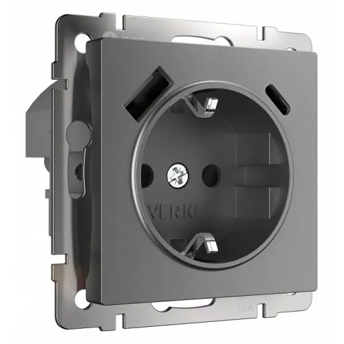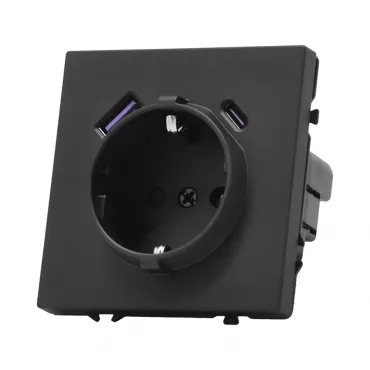 Комплект розетки с заземлением, шторками, рамкой однопостовой + 2 USB Arte Milano SET16-1-47-1 black
