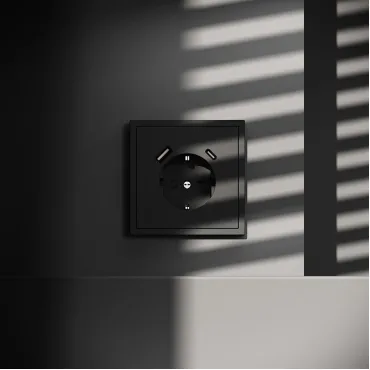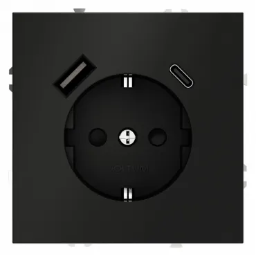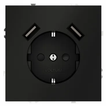 Комплект розетки с заземлением, шторками, рамкой однопостовой + 2 USB Arte Milano SET06-1-47-1 black